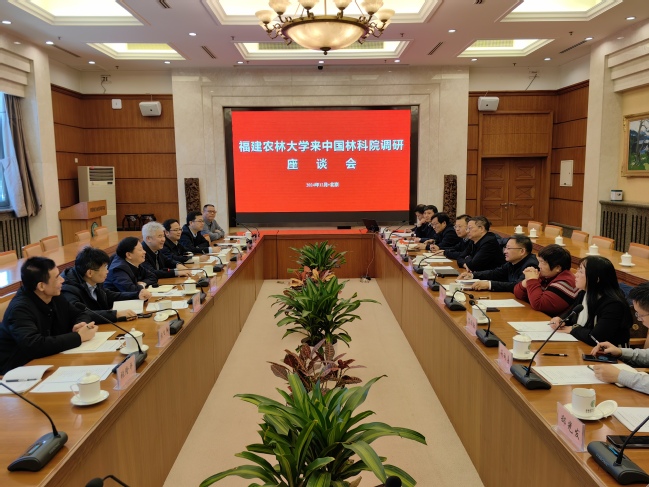 在中国林业科学研究院学习交流期间,中国林业科学研究院分党组书记叶智、院长汪阳东、副院长王军辉,有关研究所和职能部门负责人参加座谈。双方围绕联合开展林业关键核心技术攻关,“三北”工程、集体林权制度改革、国家公园建设、生物多样性保护等重大科技项目申报,国家创新联盟、生态定位站、国家工程技术中心、种质资源库等科研创新平台共建以及研究生培养、教学科研人员互动交流等方面开展了深入讨论,并就深化校院合作协议达成了共识。会前,校领导一行还参观了国家林业和草原局木材标本资源库。
