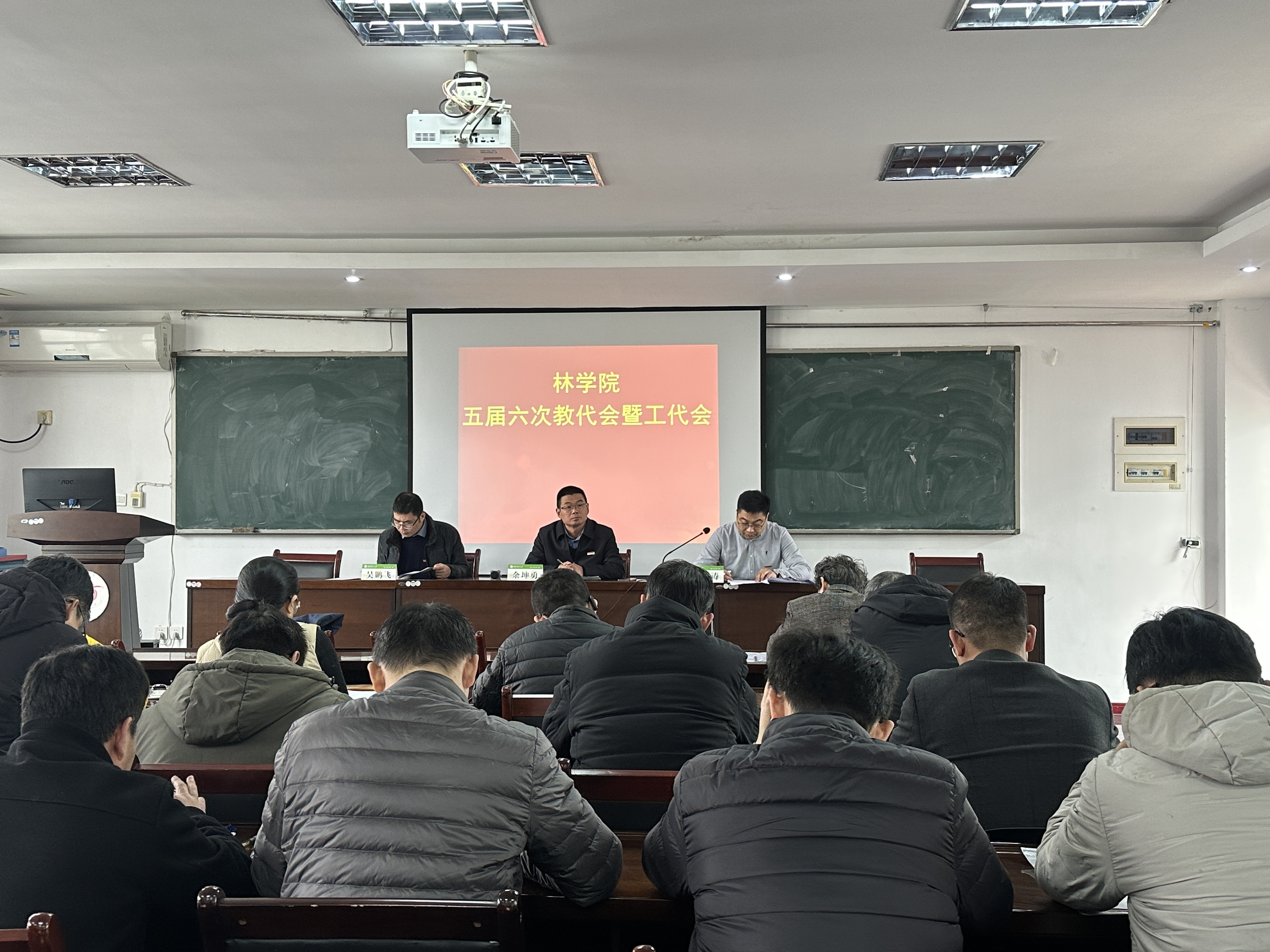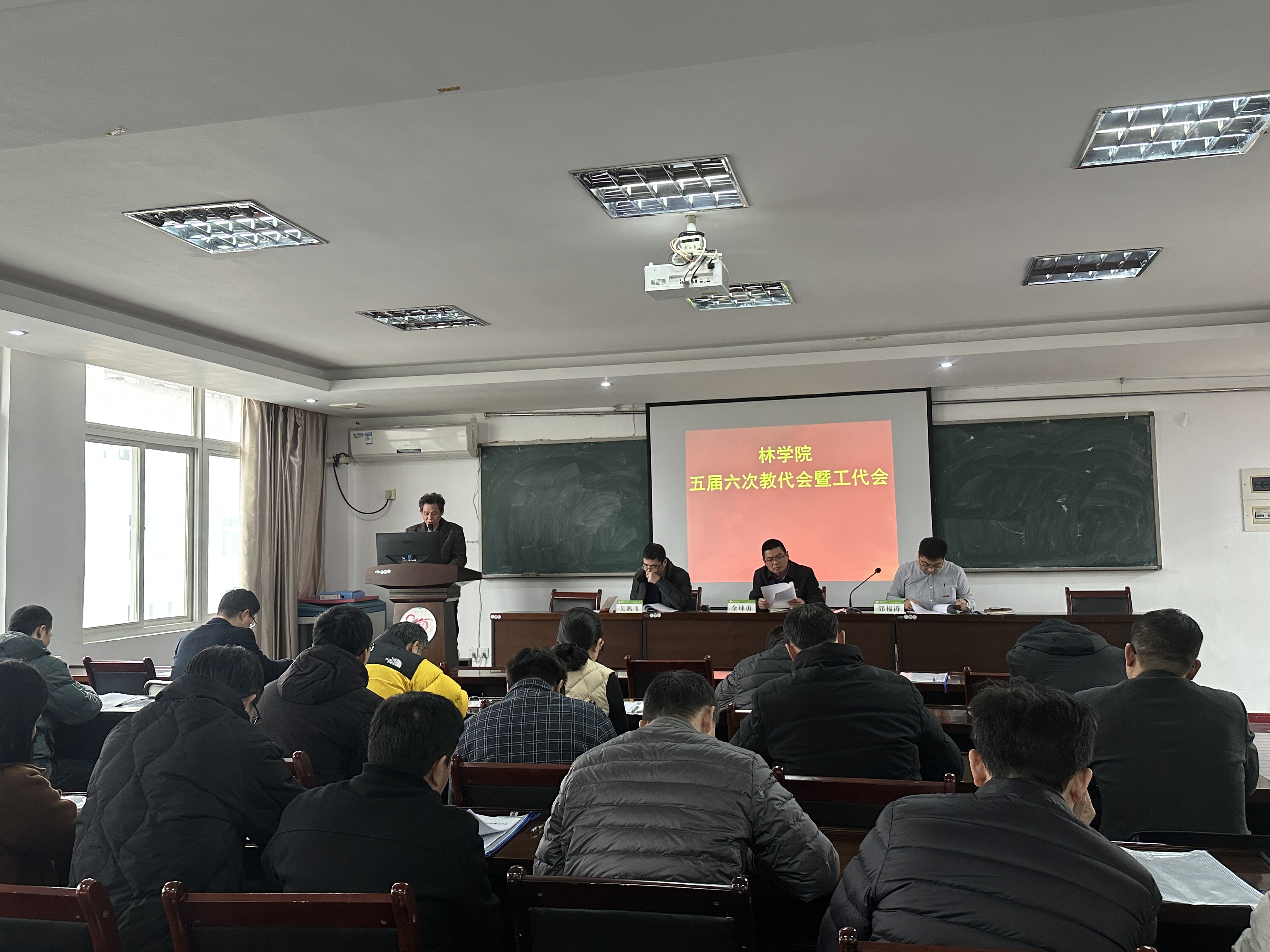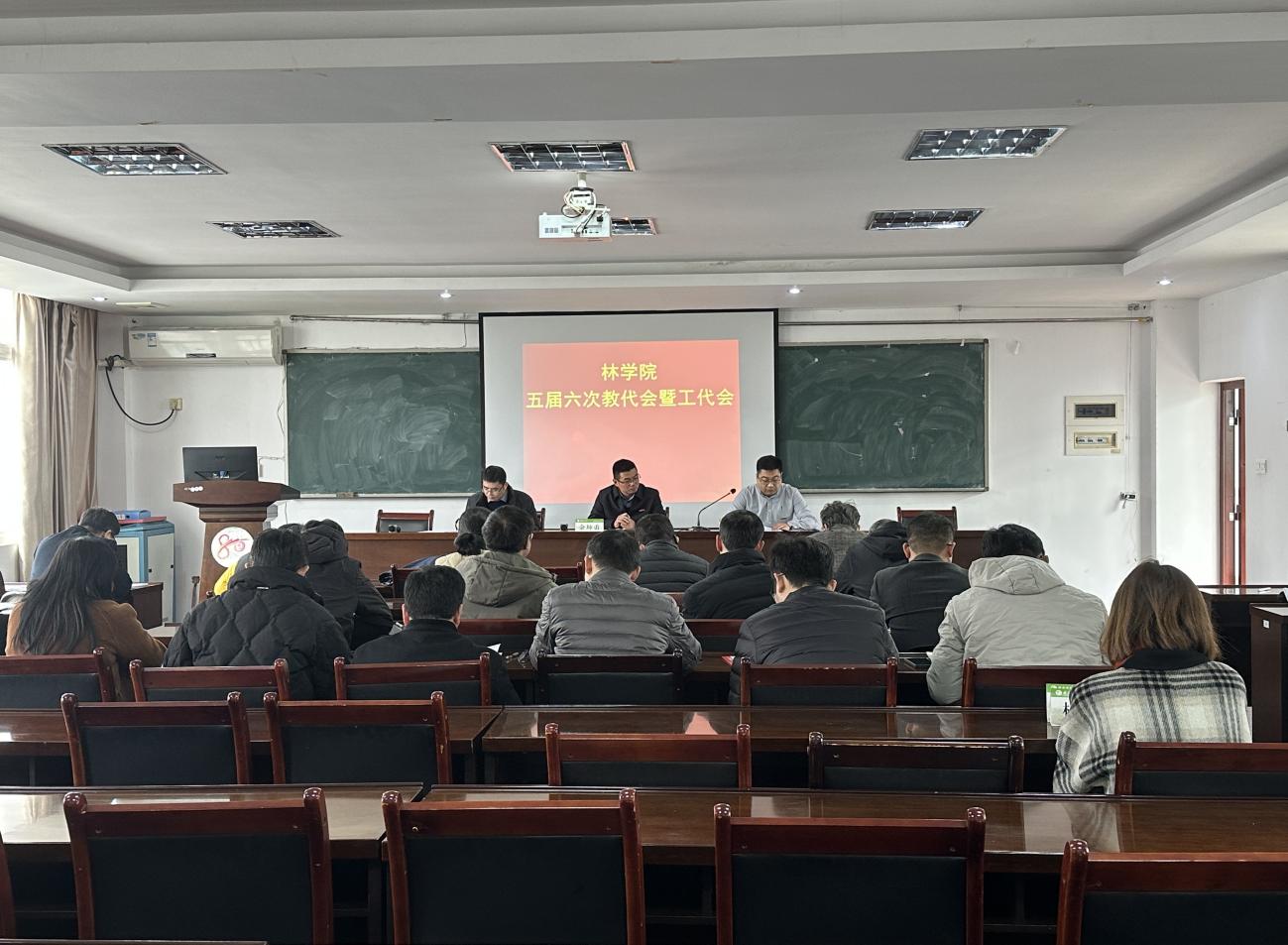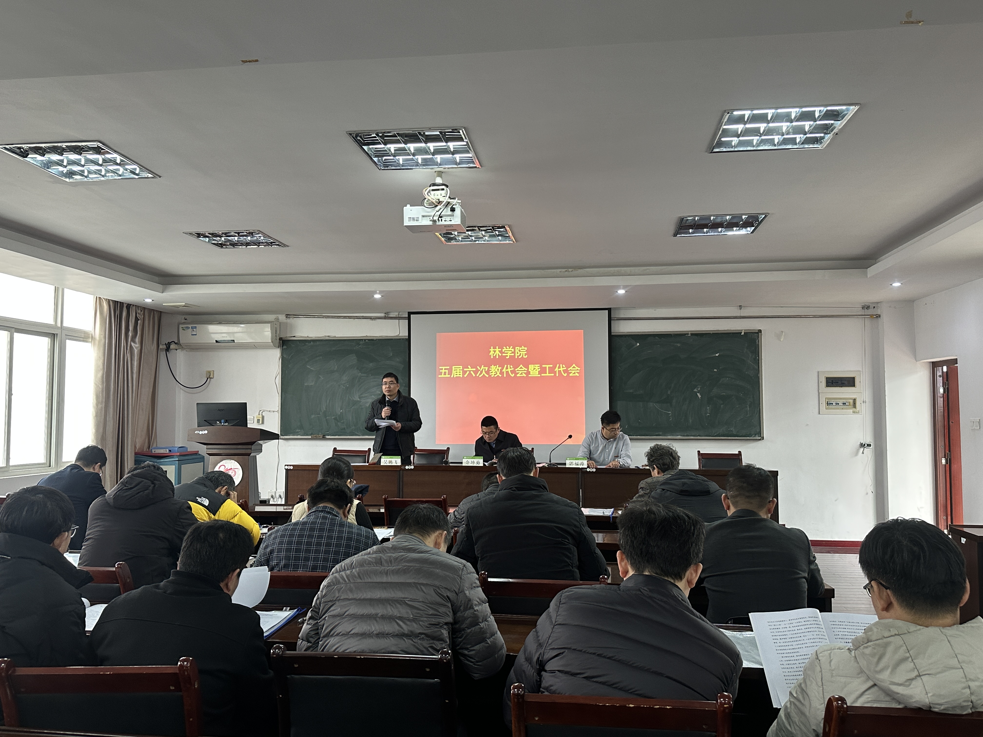 12月19日,林学院五届六次教代会暨工代会在金山校区林学楼505召开。学院党政领导班子以及全体教代会、工代会代表出席会议。大会由学院副院长、工会主席吴鹏飞主持。