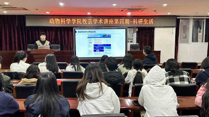 12月12日,动物科学学院在动科楼七楼大会议室举办牧芸学术讲座第四期“科研生活”专题讲座。讲座特邀三位成果丰硕、经验丰富的研究生同学担任主讲嘉宾,学院60余名硕士和博士研究生参加讲座。