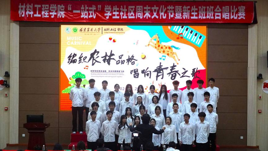 近日,材料工程学院于旗山校区小报告厅举办“编织农林品格,唱响青春之歌——”“一站式”学生社区周末文化节暨新生班班合唱比赛。学院全体2024级本科新生以班级为单位参加比赛。