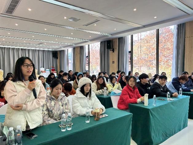 在交流座谈会上,龙栖山森林康养基地的负责人吴斐婷介绍了基地环境、基础设施和发展情况,指出:“森林康养不仅是提升人们身心健康的重要途径,更是促进生态文明建设的关键环节。通过科学的康养活动,能够有效缓解现代社会带来的压力,增强人们的环保意识,推动人与自然的和谐共生。”强调森林康养不仅能够带动当地区域经济和乡村振兴,还能促进生态保护与可持续发展。同学们与基地负责人进行了深入的交流和探讨。