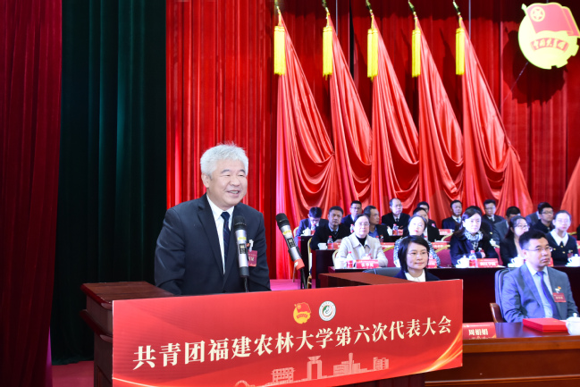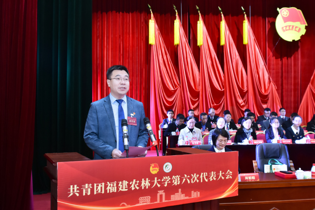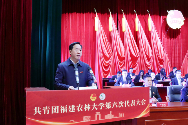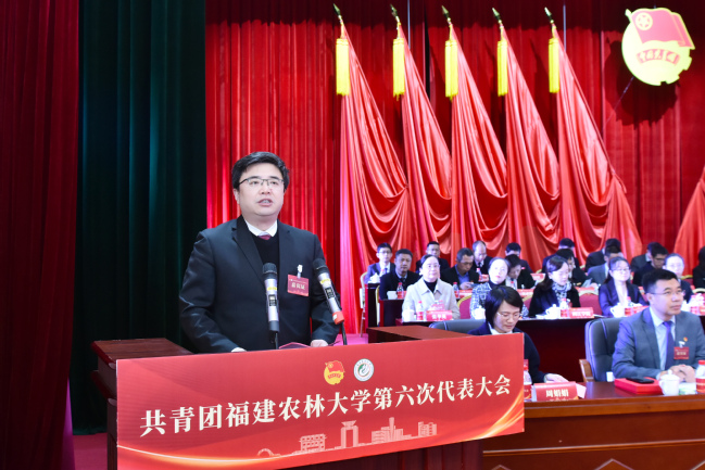 李腾代表共青团福建省委向大会的召开表示热烈祝贺,他充分肯定了学校共青团自第五次代表大会以来,在强化思想引领、服务青年成长、活跃校园文化、加强自身建设、承接全团重大任务等方面取得的显著成果,并提出四点希望:一是坚持为党育人,引导团员青年坚定理想信念、厚植爱农情怀;二是自觉担当尽责,引领青年学子练就兴农本领、投身乡村振兴;三是当好桥梁纽带,竭诚服务青年学子健康成长、全面发展;四是勇于自我革命,持续深化团学改革、全面从严管团治团。