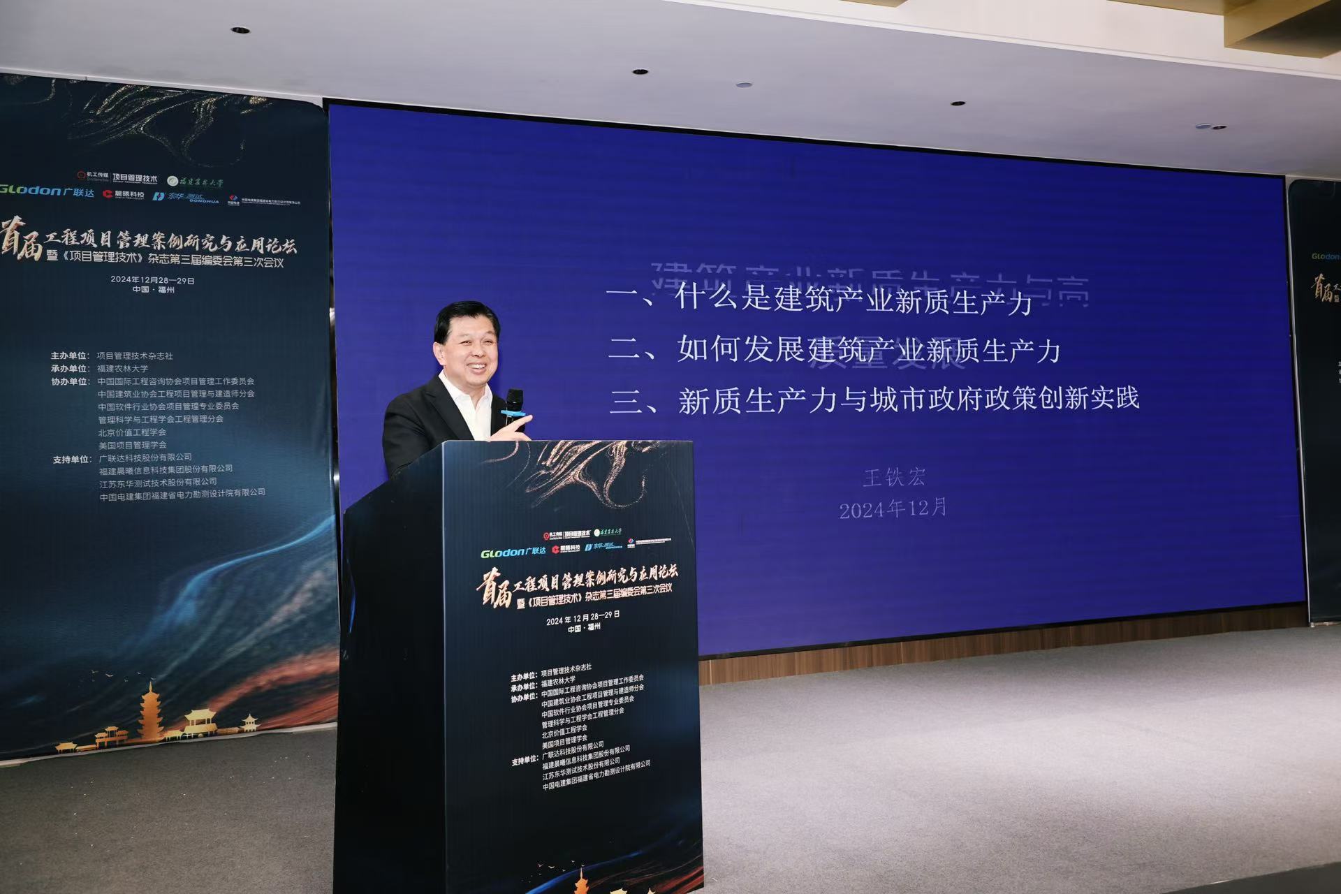 12月27-28日,由我校承办的首届工程项目管理案例研究与应用论坛在福州举行。机械工业信息研究院党委副书记周宝东、福建省住建厅副厅长陈元豹、我校副校长林庆藩出席并致辞,东南大学土木工程学院副院长李德智教授主持开幕式。论坛还为2024年度优秀项目案例颁奖。