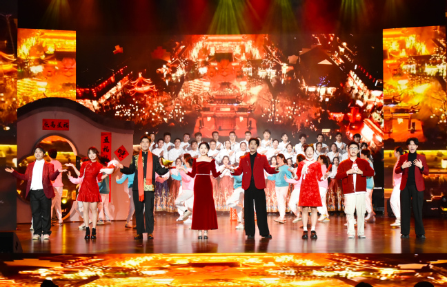 新年晚会以“巳巳如意,生生不息”为主题,分为“勇毅前行颂中华”“矢志奋斗铸辉煌”“同心筑梦再启航”三大篇章,以歌曲、舞蹈、武术、音诗画、音乐剧等多种艺术形式,展现了师生开拓进取、奋发向上的精神面貌。由附属幼儿园、校大学生艺术团带来的开场鼓乐表演《中国精神》,鼓点铿锵、欢快喜庆,迅速将现场气氛点燃。辅导员合唱团、校大学生艺术团合唱团、校十佳歌手合唱的《小美满》《蛇全蛇美》,曲调优美、旋律悠扬,描述了生活中平凡而美好的瞬间,表达了对未来的无限憧憬。民乐、武术表演《黑神话·云宫讯音》,激昂的民乐与刚劲的武术碰撞交融,让师生感受到了中华传统文化的独特魅力和深厚底蕴。原创女子群舞《蚵厝花开》描绘了蚵厝花开的绚烂景象,展现闽南风情的独特韵味。《我爱你中国》用音乐小品的形式,展现了青年以热情为笔,以信念为墨,传承非遗的感人故事。男子群舞《旗风》,旗帜飘扬、舞姿飒爽,展现出当代青年的蓬勃朝气和昂扬斗志。音诗画《在中国大地上报道》,歌颂了祖国的蓬勃发展与沧桑巨变。校老体协舞蹈团演绎的《祖国之恋》,表达对祖国深深的热爱和眷恋之情。原创数字舞蹈《数字未来》,在奇妙的人屏互动表演中,带领大家穿越时空,感受“生活更美好”的“新蝶变”。校工会舞蹈队表演的《从前慢》,演绎了灯火阑珊处的温馨与安宁。由戴尔豪西大学联合学院(国际学院)与南非德班理工大学孔子学院的师生们携手表演的歌舞《上春山》,展示了跨文化间的对话与交融。