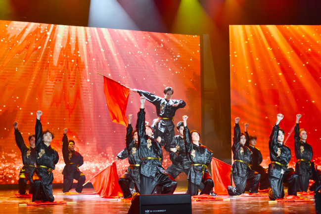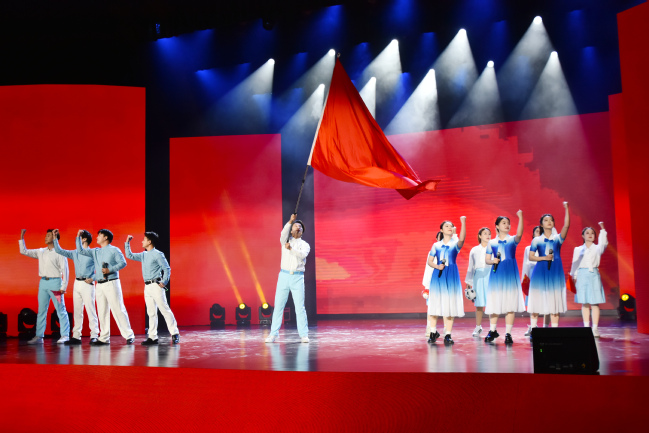 幕幕精彩、声声动容,丰富多彩的节目赢得了师生的阵阵掌声。最后,管弦乐合奏《我和我的祖国》,对祖国深情告白,将现场气氛推向了高潮。晚会在大气磅礴、昂扬奋进的旋律中圆满落下帷幕。