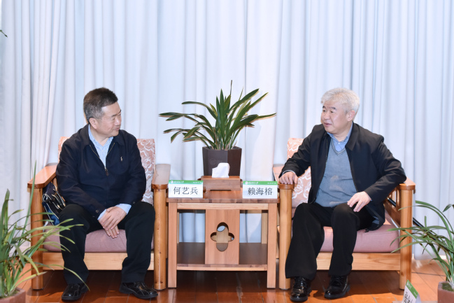 1月4日下午,农业农村部科技司二级巡视员何艺兵,云南省农业科学研究院副院长张跃彬,内蒙古自治区农牧业科学院特色作物研究所所长李晓东一行来校调研交流。校党委书记赖海榕、党委副书记陈世奎在明德楼十三层会客室会见客人一行。
