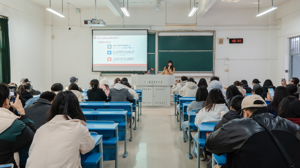 1月3日,为帮助2025届硕士毕业生更好地了解就业形势,提升就业竞争力,园艺学院在禧强楼104召开“就业引领,筑梦未来”2025届硕士毕业生就业推进会。会议由辅导员罗冰筠主持,全体2022级硕士研究生参会。