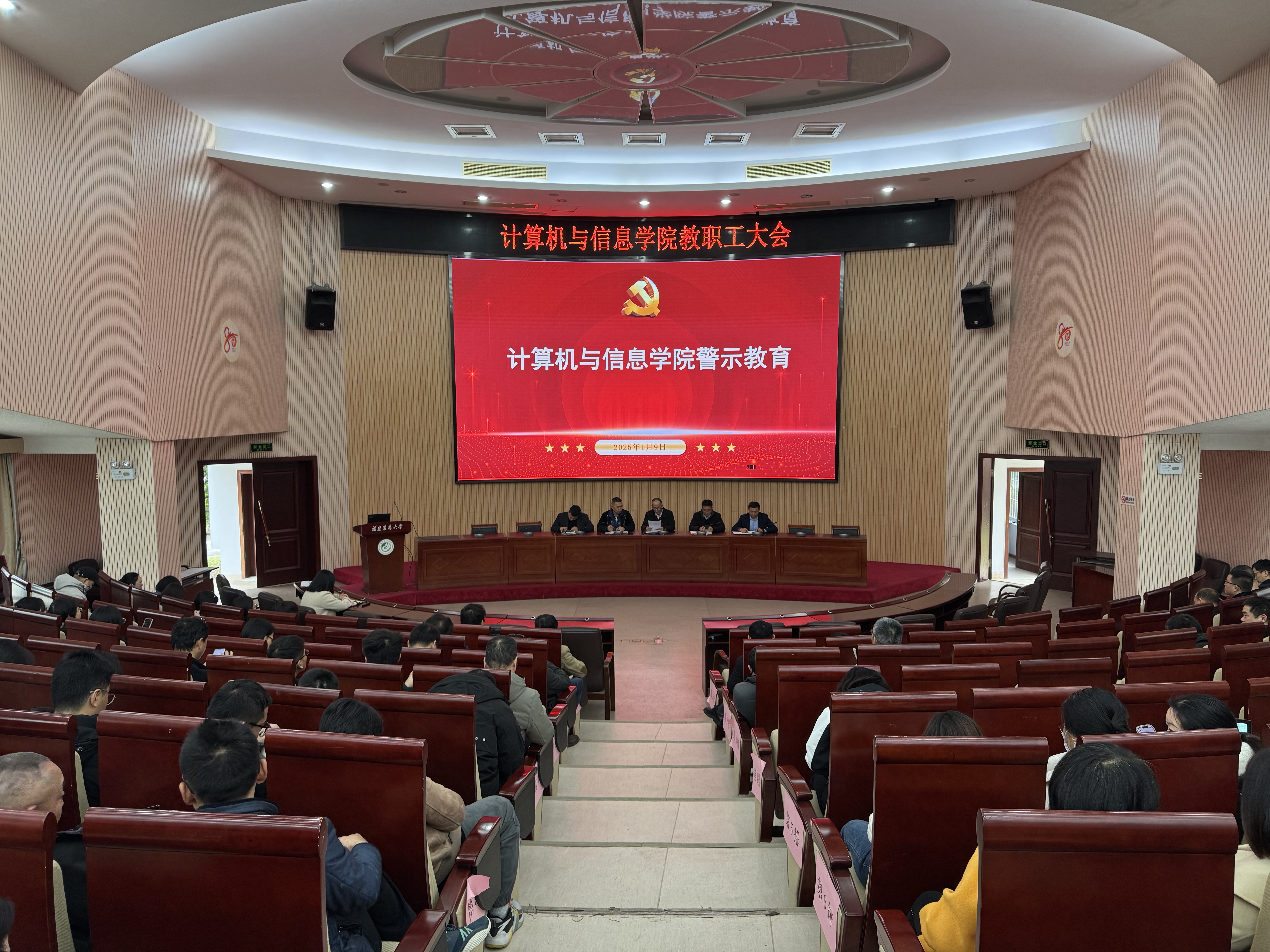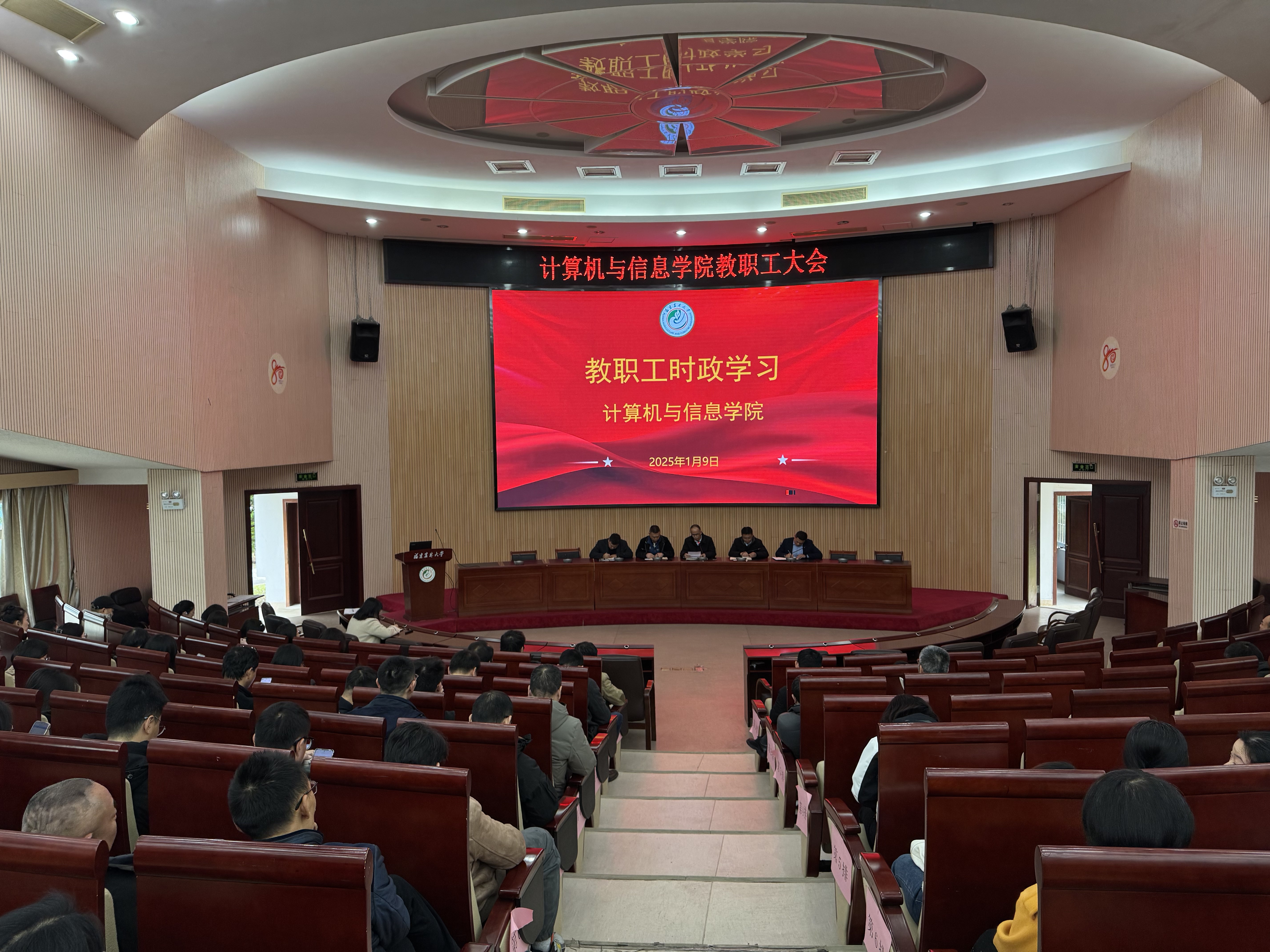 1月9日下午,计算机与信息学院在博学报告厅召开期末工作会议。全体教职工参加会议,会议由学院党委书记钟一文主持。