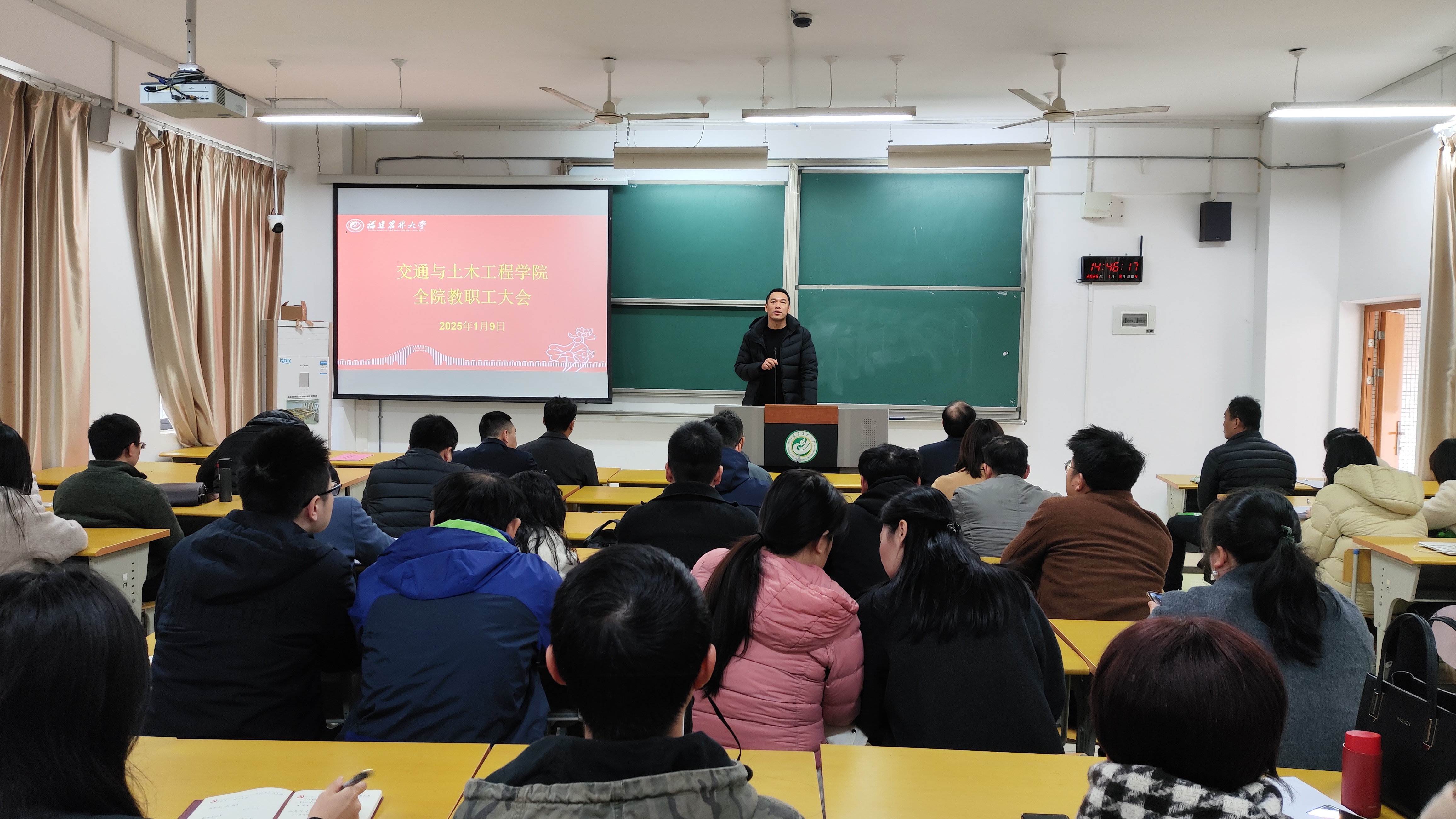1月9日下午,交通与土木工程学院在旗山校区教学楼105室举办全院教职工大会。学院党政班子成员、全体教职工参加会议。