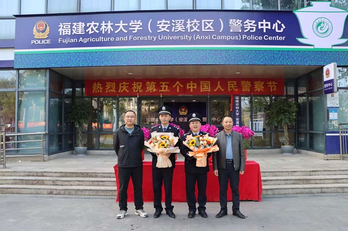 1月10日是第五个中国人民警察节。当天上午,安溪校区管委会副主任陈勇带领后勤保卫部工作人员一起走访慰问校区警务中心,送去鲜花及节日祝福。