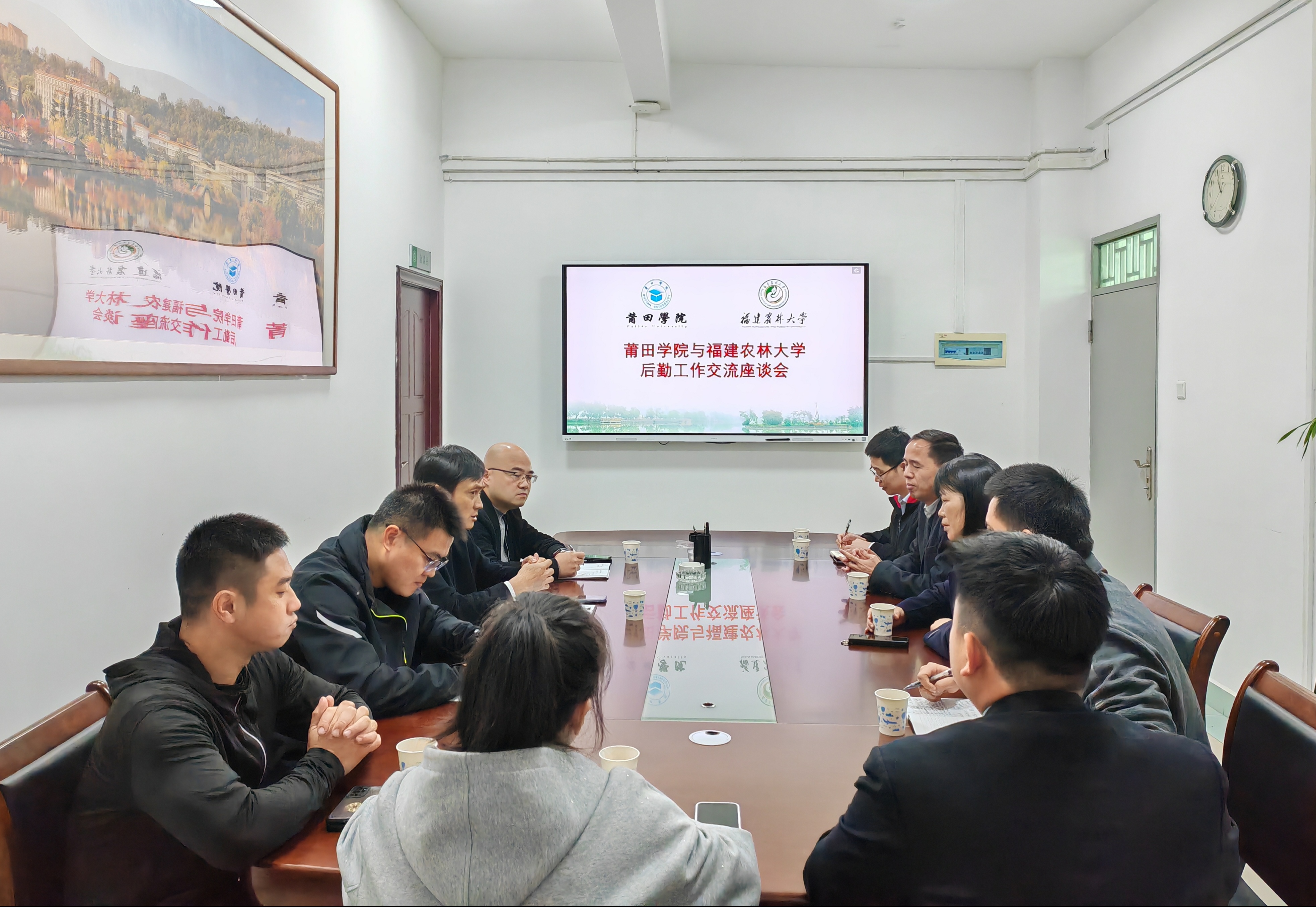 1月9日,莆田学院后勤处副处长朱晓莹一行到我校调研交流校园餐饮管理有关工作。后勤管理处处长刘胜、副处长刘键政及相关科室负责同志参加座谈交流。