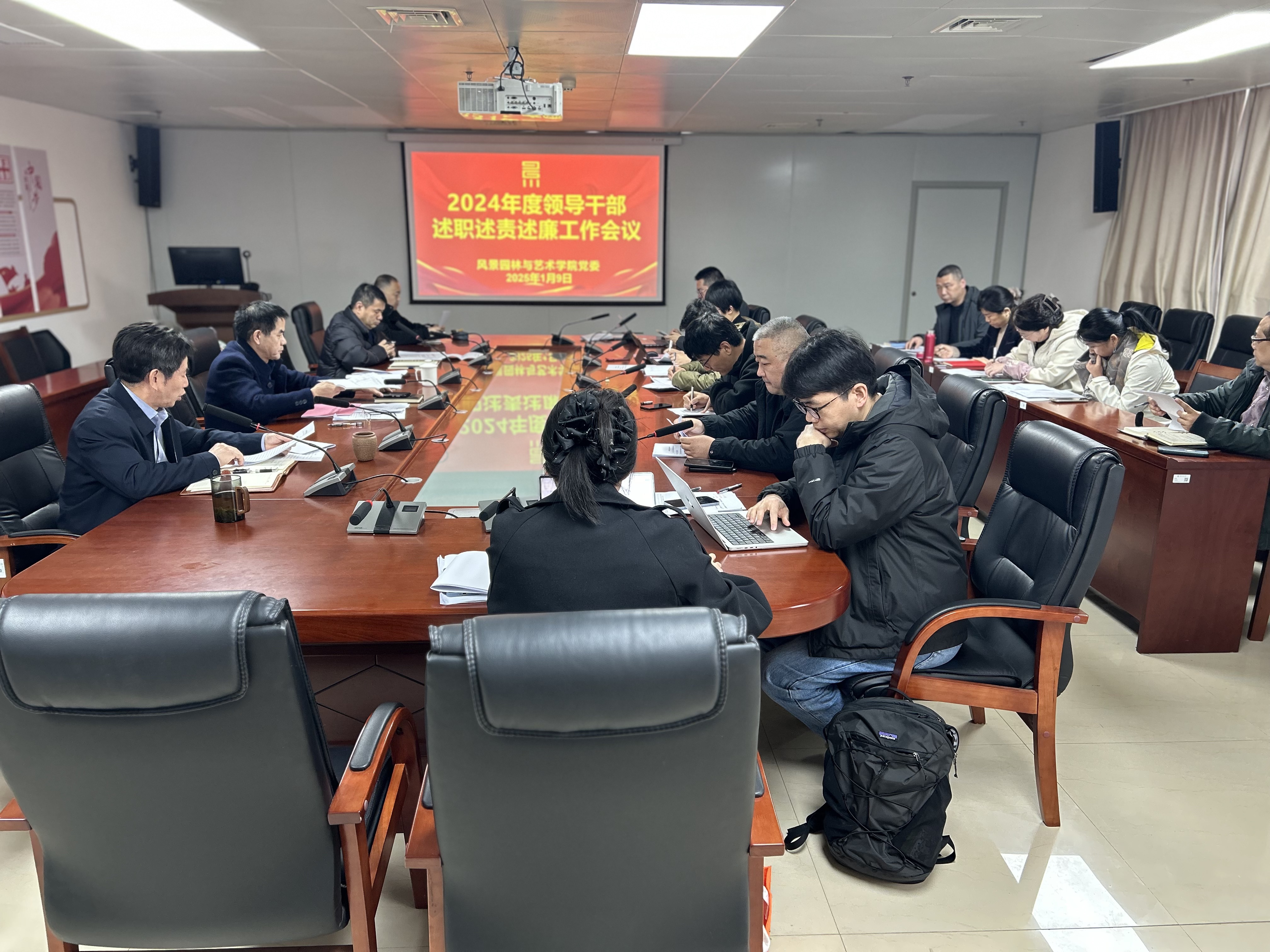 1月9日上午,风景园林与艺术学院在学院1102会议室召开2024年度中层干部述职和述责述廉考核工作。学院党政班子成员、党委委员、工会主席、民主党派负责人、科级干部、系主任、实验室负责人、党支部书记校双代会代表等参加会议,会议由学院党委书记雷国铨主持。