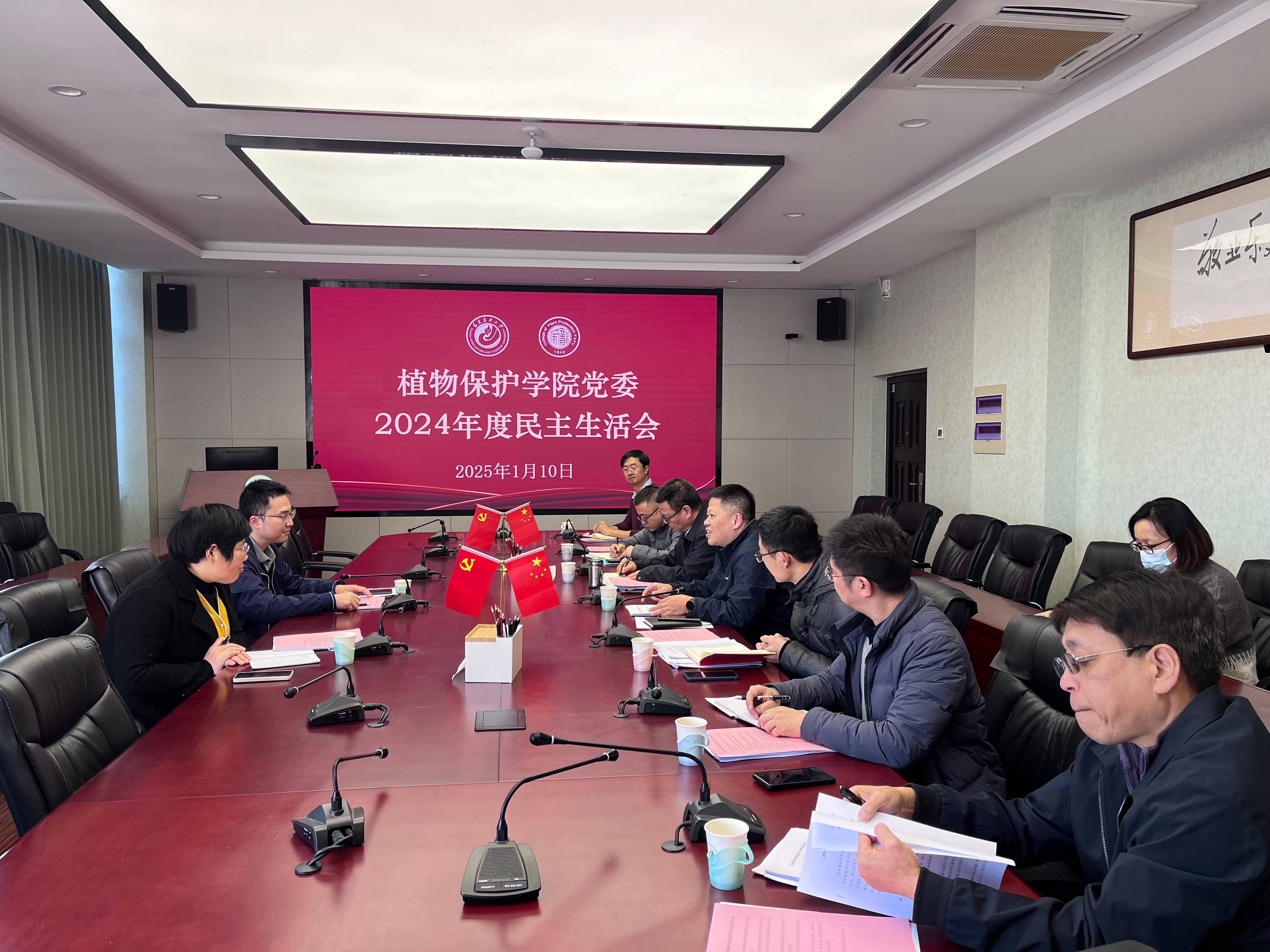 1月10日下午,植物保护学院党委在博学楼703会议室召开2024年度民主生活会,校第一督导组副组长、校党政办副主任丁喆,机关党委综合科科长林小梅到会指导。会议由学院党委书记沈必胜主持,学院党委领导班子成员参加会议,科级干部列席会议。