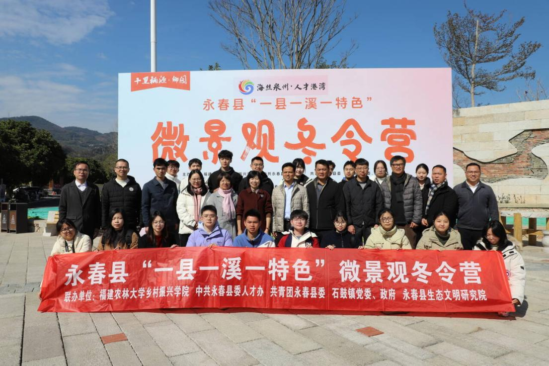 近日,乡村振兴学院,中共永春县委人才办,共青团永春县委,石鼓镇党委、政府,县生态文明研究院联合举办永春县“一县一溪一特色”微景观冬令营活动。此次永春县生态文明研究院微景观改造寒假实践紧扣“一县一溪一特色”主题,旨在深入挖掘永春当地独特的生态资源与“非遗”人文风情,通过“乡村有需求,高校来答题,村民来阅卷”的“需求+”来进行打造大学生社会实践新模式,实践队将依托十里桃源和石鼓镇特色生态景观,因地制宜打造“一县一溪一特色”微景观,展现永春县特色田园风光,探索大学生服务乡村振兴的新路子。