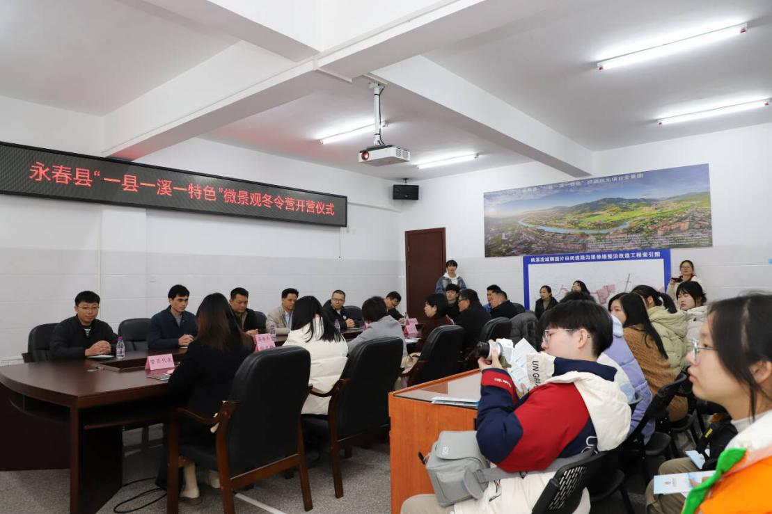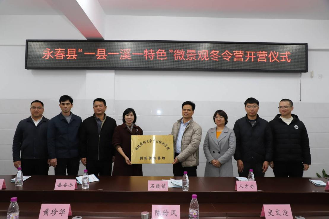1月11日上午,永春县“一县一溪一特色”微景观冬令营在石鼓镇举行开营仪式,永春县生态文明研究院副秘书长方良泽主持。乡村振兴学院党委副书记陈玲凤、团委副书记黄珍华、硕士生导师殷文梅,永春县委办颜尧民,县委人才办苏毓晖、陈炜方,县团委洪建法,石鼓镇镇长尤长新、副书记李伟波,厦门艺术家史文沧、庄永强以及乡村振兴学院"需求+"福农助村微景观改造实践队全体同学参加活动。