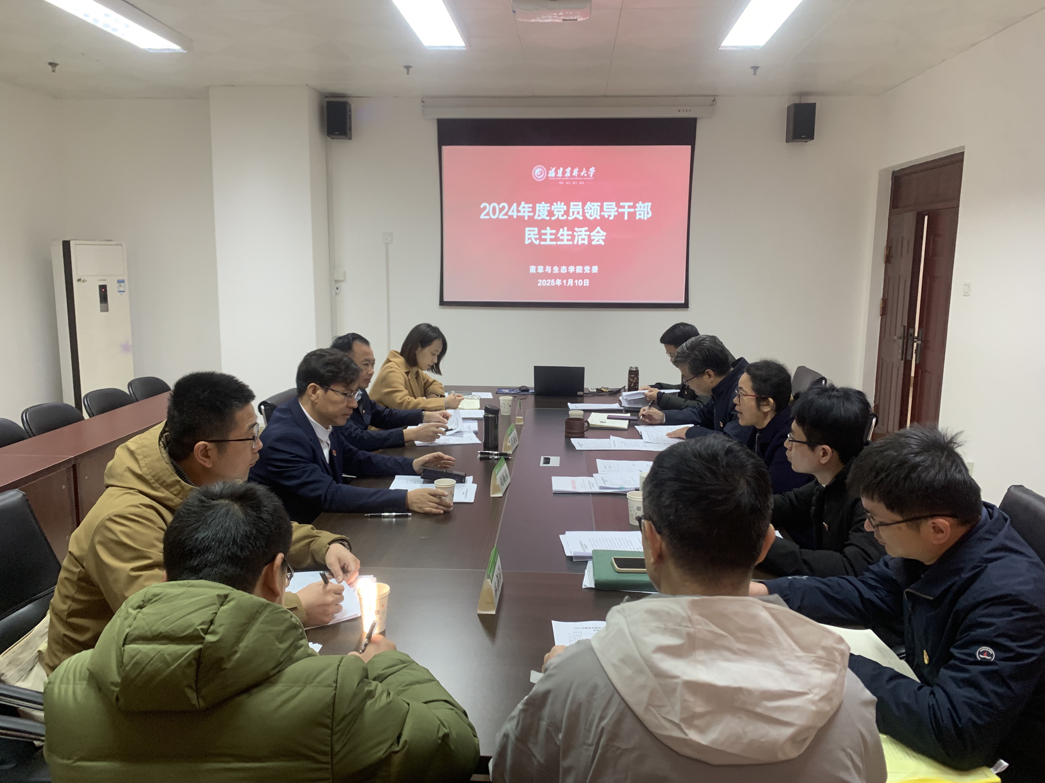 1月10日,菌草与生态学院党委在金综楼A401会议室召开2024年度民主生活会。校党委常委、副校长周顺桂,校第七督导组组长、武装部(保卫处)部长肖知亮,社会科学处综合科科长侯安然,社会服务处推广科副科长林剑清到会指导。学院党委领导班子成员参加会议,会议由学院党委书记陈月霄主持。学院纪委委员、教师党员代表列席会议。