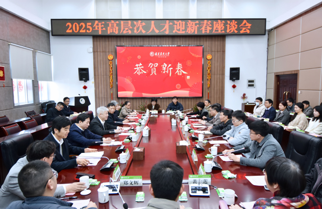 1月16日上午,我校在金山校区明德楼武夷厅召开2025年高层次人才迎新春座谈会。全体在家校领导与高层次人才欢聚一堂,交流工作,畅谈未来。座谈会由校党委书记赖海榕主持。