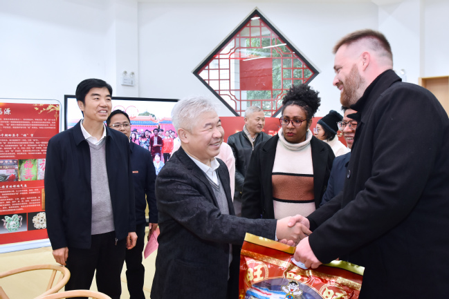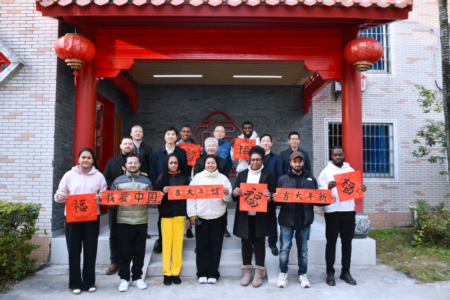 在福文化研习社,校领导一行与来自俄罗斯、加纳、尼日利亚、孟加拉、缅甸、巴布亚新几内亚、尼泊尔、苏丹等国的留学生亲切交谈,送上新春礼包,关切询问他们的学习、生活等情况,祝愿他们新春愉快、身体健康、学业有成。留学生们热情地展示自己书写的春联,盛情邀请赖海榕书记共同书写“福”字、一起迎春添福。大家纷纷表示,在春节假期到来之际,感受到学校的关心关爱,心里特别温暖,加深了对学校的归属感和对中国文化的认同。来自尼日利亚的工商管理专业硕士研究生Muktar Ukasha Zololo激动地说道:“新年快乐!欢迎到非洲看看!”
