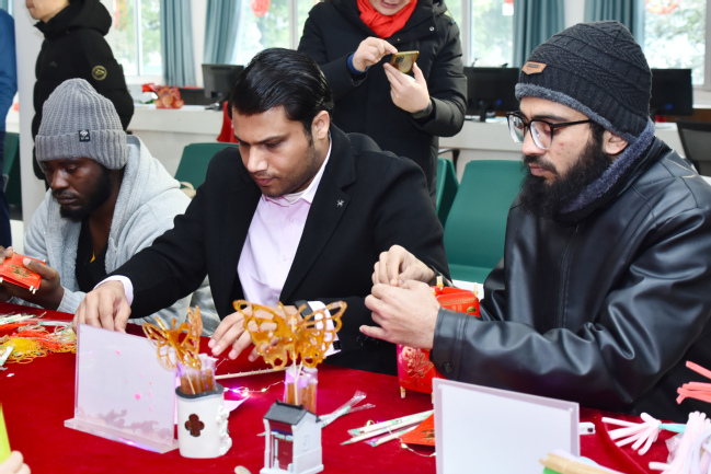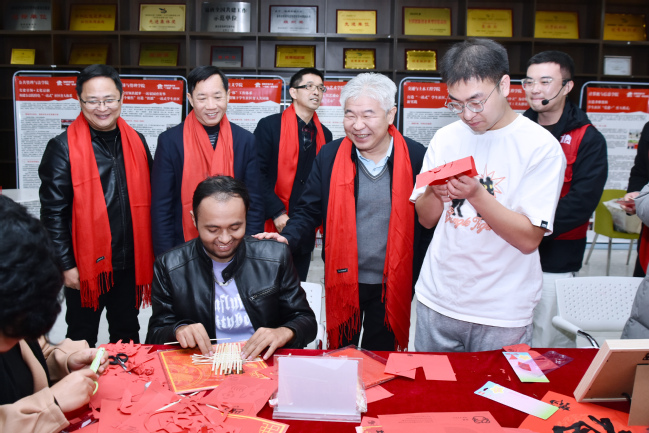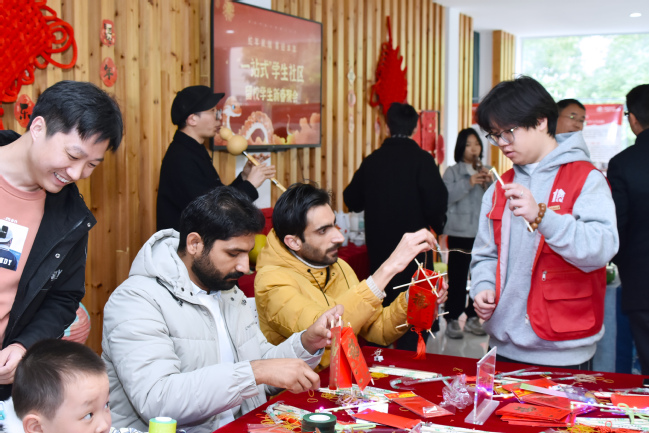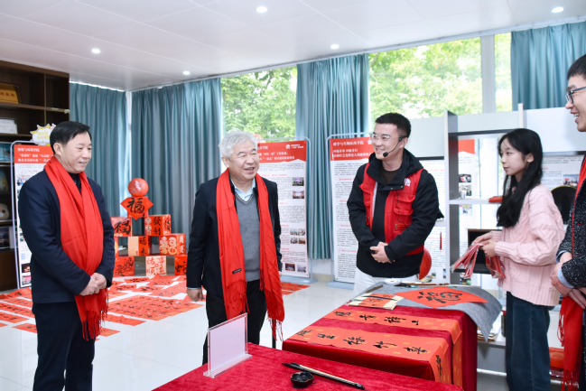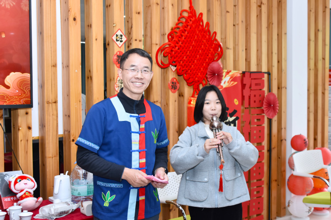春节临近,校园里洋溢着喜庆祥和氛围,“一站式”学生社区张灯结彩、暖意融融,留校学生们欢聚一堂、共迎新春。赖海榕来到学生们中间,同大家亲切交谈、互致问候,关切询问他们的学习和生活情况,共同展望美好的未来。“品茶要先从赏外形、闻香气、观汤色开始”“灯笼要扎得再紧一些”“做竹编的时候小心伤到手”……一句句叮咛,一声声笑语,让温暖在师生间传递。活动现场,校领导与学生们共同体验了斗茶、写春联、扎灯笼、做竹编、画糖画等众多传统民俗活动。大家纷纷表示,深刻感受到了在校如在家的感觉。许多同学不断拿起手机拍照,将这份快乐传递给远方的家人。