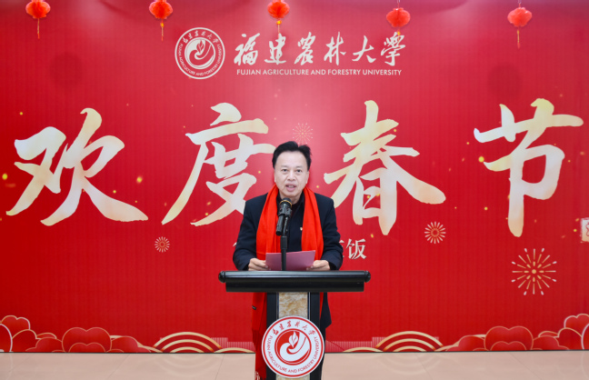 郑宝东副校长受校党委书记赖海榕、校长兰思仁委托,代表校党委、校行政向留校师生和坚守岗位的工作人员致以节日问候和新春祝福。他回顾了过去一年我校在人才培养、科技创新、平台建设、学科建设等方面取得的显著成绩,勉励师生在新的一年里继续与学校携手共进,以更加饱满的热情、更加昂扬的斗志,在争创国家“双一流”中奋勇争先、真抓实干,共同书写学校高质量发展的崭新篇章。