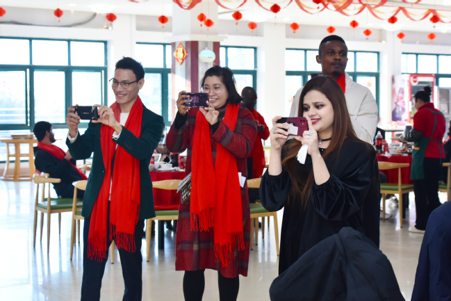 据悉,今年全校有150多位中外留校师生、后勤保卫等职工留校过年。校领导与留校师生共度除夕已成为学校的传统,也成为许多师生难忘的珍贵回忆。