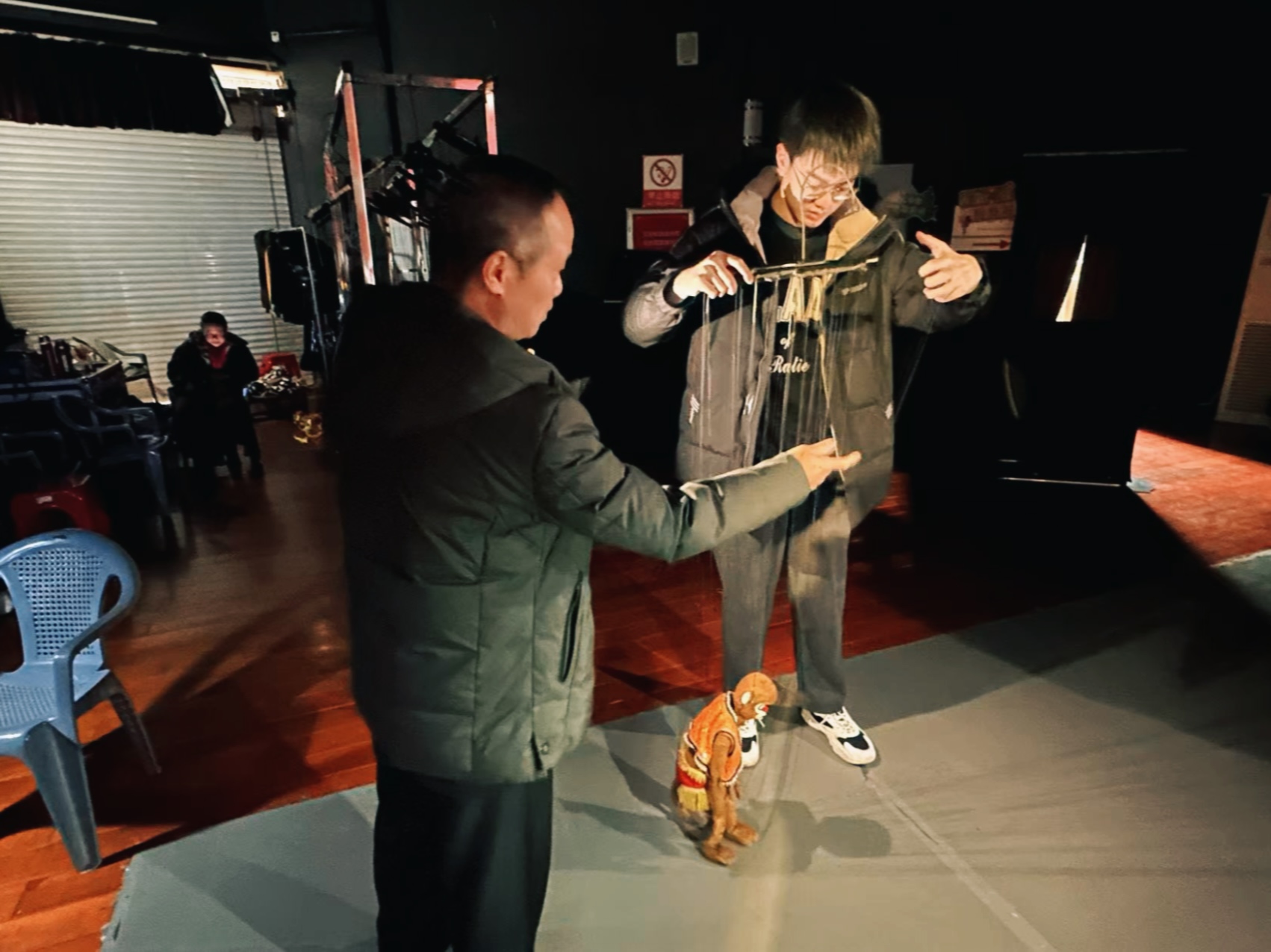 互动体验环节是本次探访的重中之重,在传承人的指导下,实践队员亲自上手操作木偶,尝试“行云流水”“喜怒嗔痴”等基础动作,切身感受到“一牵一引,百态人生”的技艺魅力。这是一场融历史观照、技艺解密与沉浸体验为一体的非遗课堂,让年轻学子在木偶的腾挪顾盼间触摸到传统文化的温度,更在提线交错的实践中体悟到匠人“以心驭偶”的传承真谛。