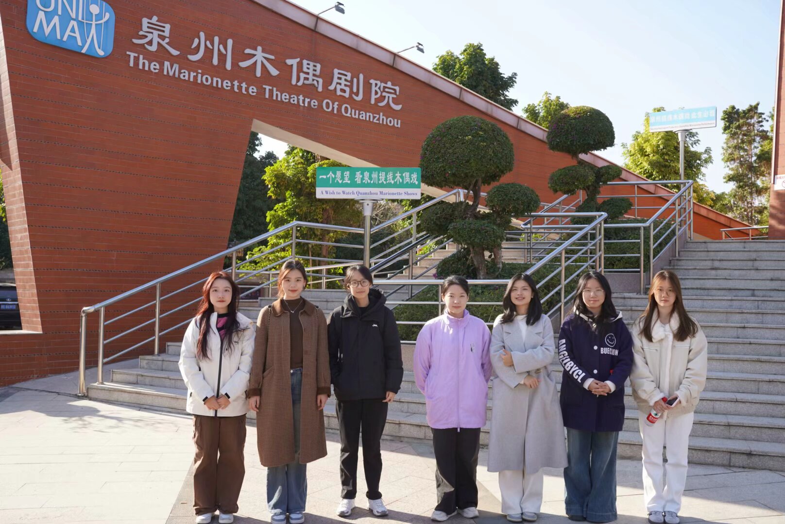 巧木造化意万千,木偶指艺展乾坤。木偶戏作为泉州非物质文化遗产的重要组成部分,在精雕细琢的作品中承载着手艺人的巧思与技艺。实践队员们一同前往泉州木偶剧院参观学习,成员们进入泉州木偶剧院,在资料展示厅观看闽台文化交流的实践纪实,并上手尝试了木偶戏的表演,领略木偶艺术的文化底蕴。