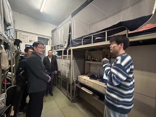 随后,曾起郁一行走访学生宿舍,与同学们亲切交流,表达了学院对同学们的亲切关怀,勉励同学们要珍惜美好的青春时光,扎实学好专业知识,努力提高综合素养,争做德智体美劳全面发展的新时代大学生。同时,他们还仔细检查了宿舍的安全设施,着重强调了用水用电安全的重要性,倡导同学们共同维护宿舍的整洁卫生,营造一个安全、舒适、温馨的生活学习环境。