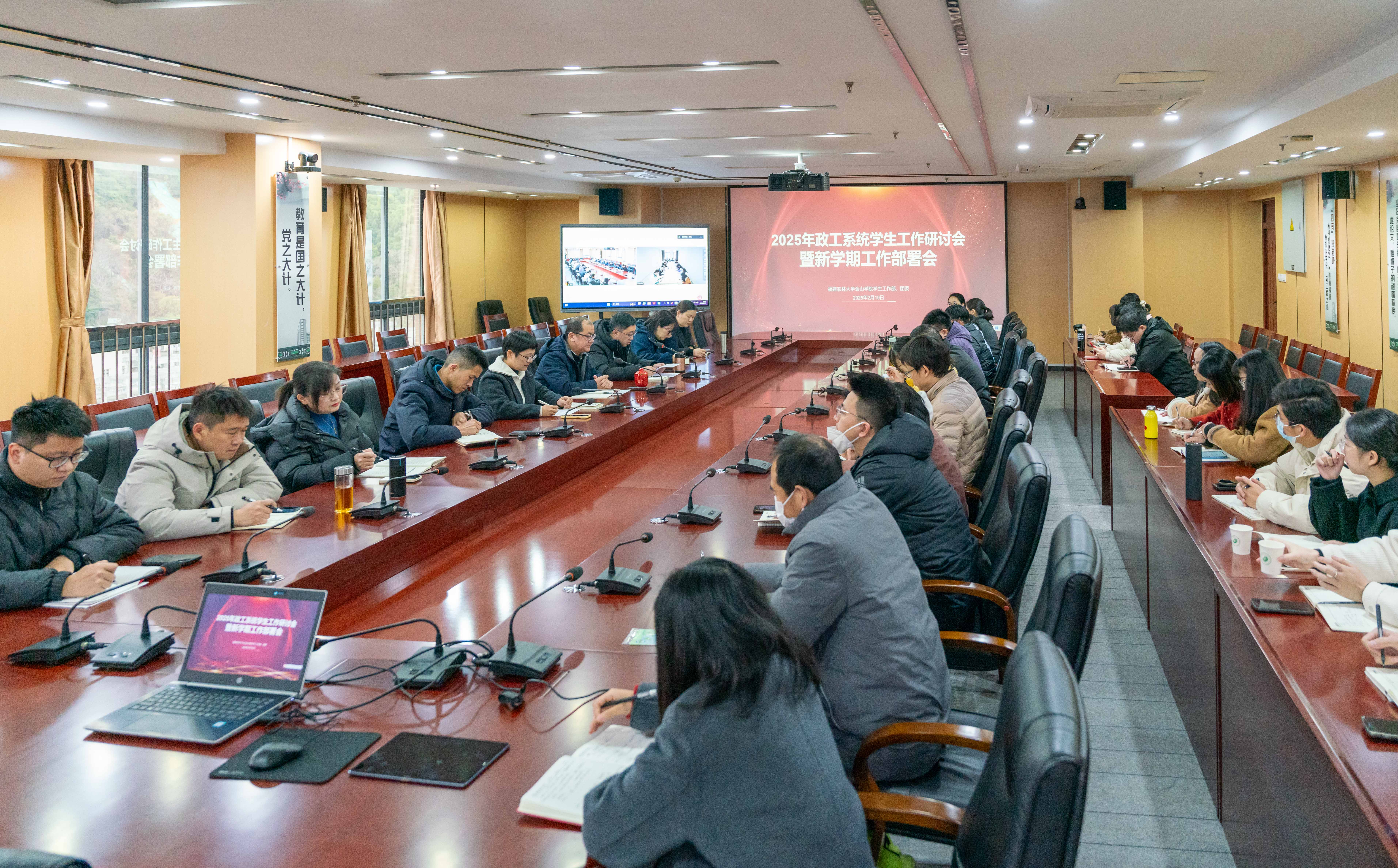 2月19日上午,金山学院在学院第二会议室召开2025年政工系统学生工作研讨会暨新学期工作部署会。院党委副书记、纪委书记叶扬捷,院党委副书记郑智彬,全体政工参加会议,学院(安溪)校区以视频方式参会。会议由学生处负责人主持。