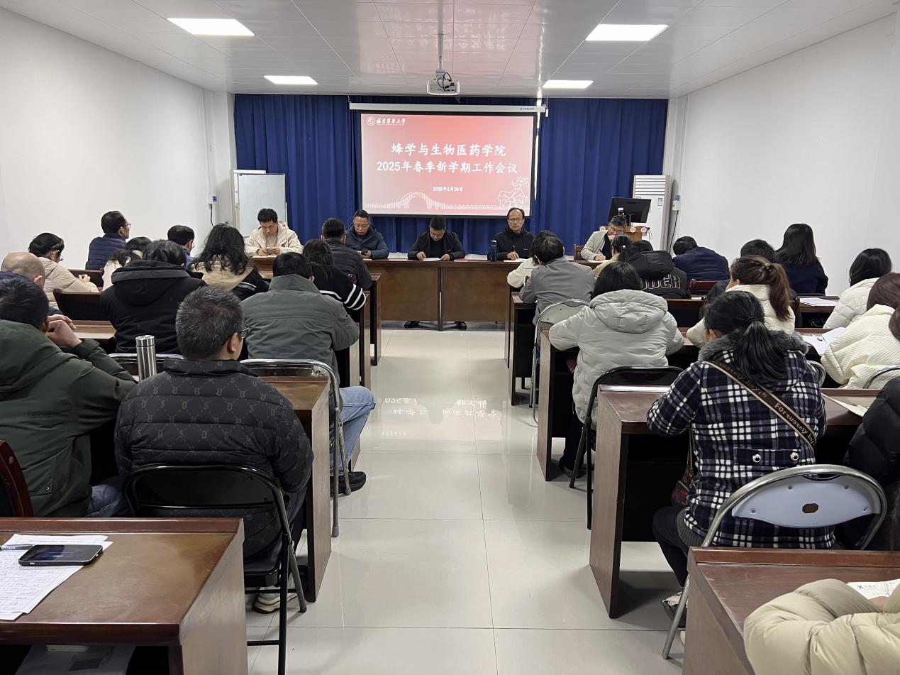 2月20日下午,蜂学与生物医药学院在蜂学楼206召开2025年春季学期工作会议,学院领导班子成员及全院教职工参会,会议由学院党委副书记黄顺容主持。
