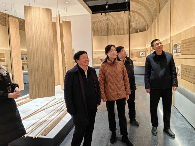 在竹立方创新展示中心,校领导一行深入了解邵武市竹产业发展现状、竹文化以及竹材在装配式建筑、家居设计、文创产品等领域的创新应用场景,与企业负责人深入交流,了解“以竹代钢、以竹代塑”的应用场景。