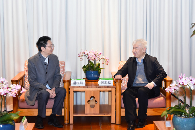 2月26日上午,中国热带农业科学院副院长谢江辉一行来校调研交流。校党委书记赖海榕在明德楼十三层会客室会见客人。双方就进一步深化合作等事宜进行座谈交流。