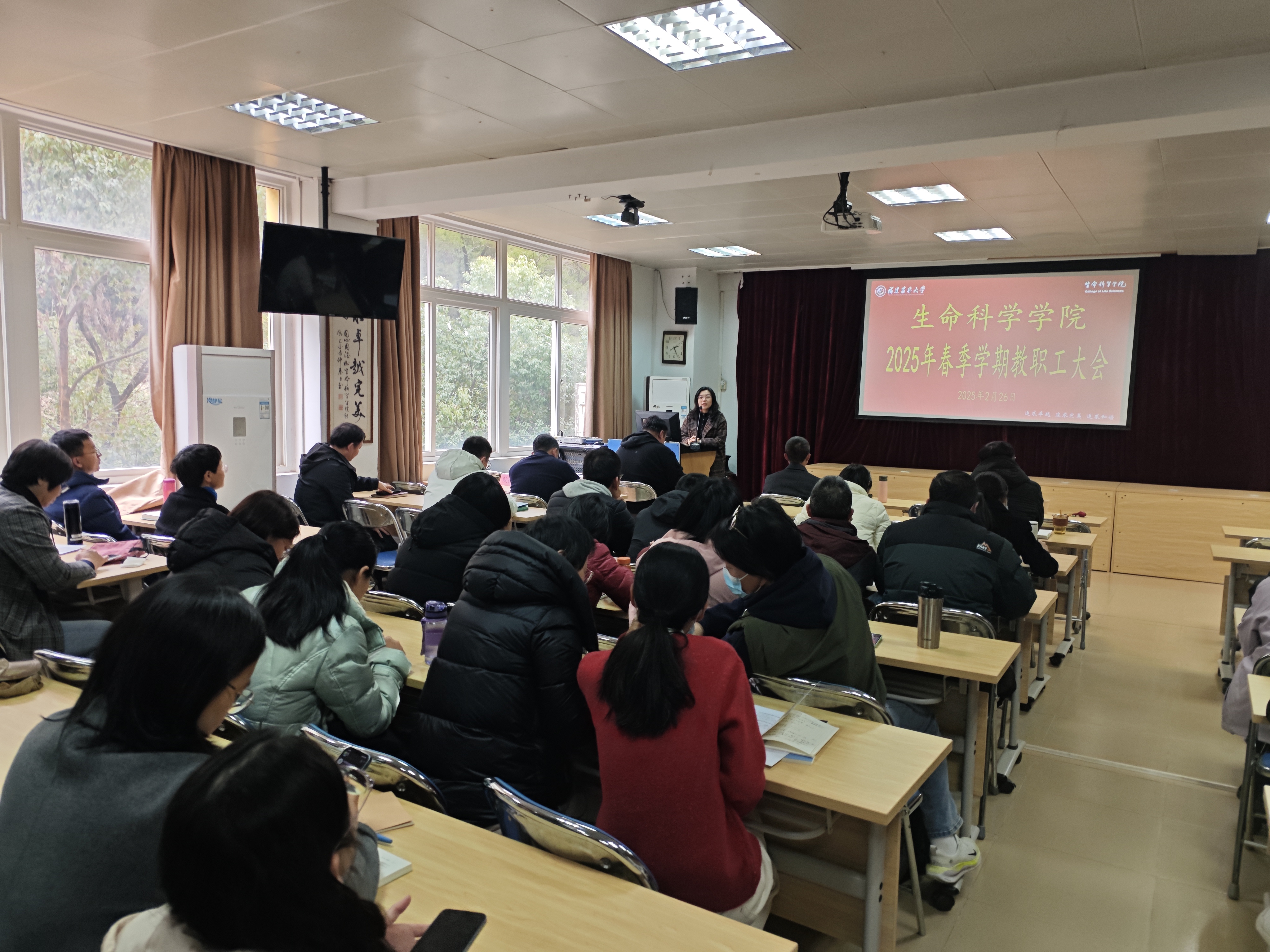 2月26日下午,生命科学学院在生科楼414召开2025年春季学期教职工大会,学院全体教职工参加,会议由院党委书记余顺兴主持。