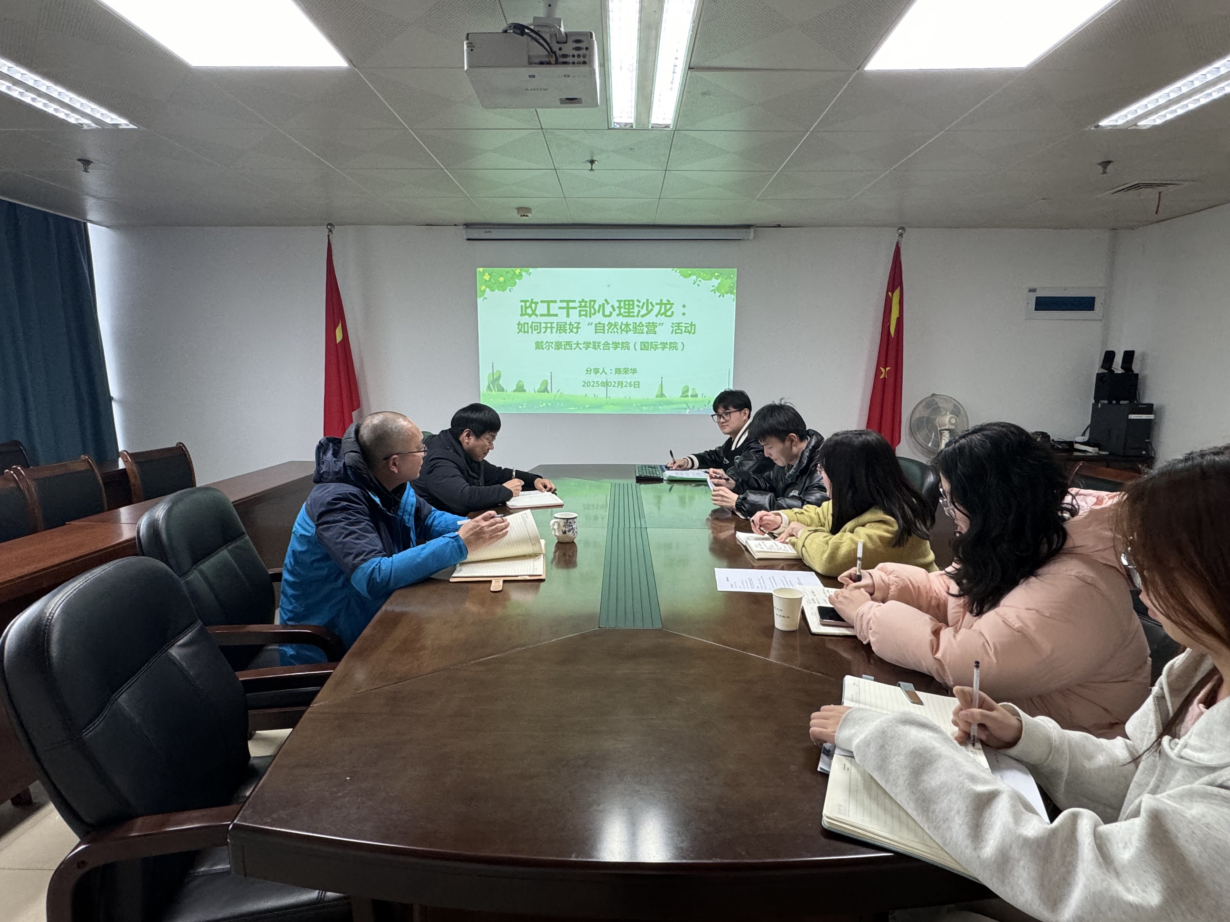 为进一步提升学院心理健康教育工作水平,探索创新心理育人模式,2月26日,戴尔豪西大学联合学院(国际学院)于旗山校区综合楼901举办政工干部心理沙龙,学院党委副书记刘敏与全体辅导员围绕自然体验营活动展开深入研讨。