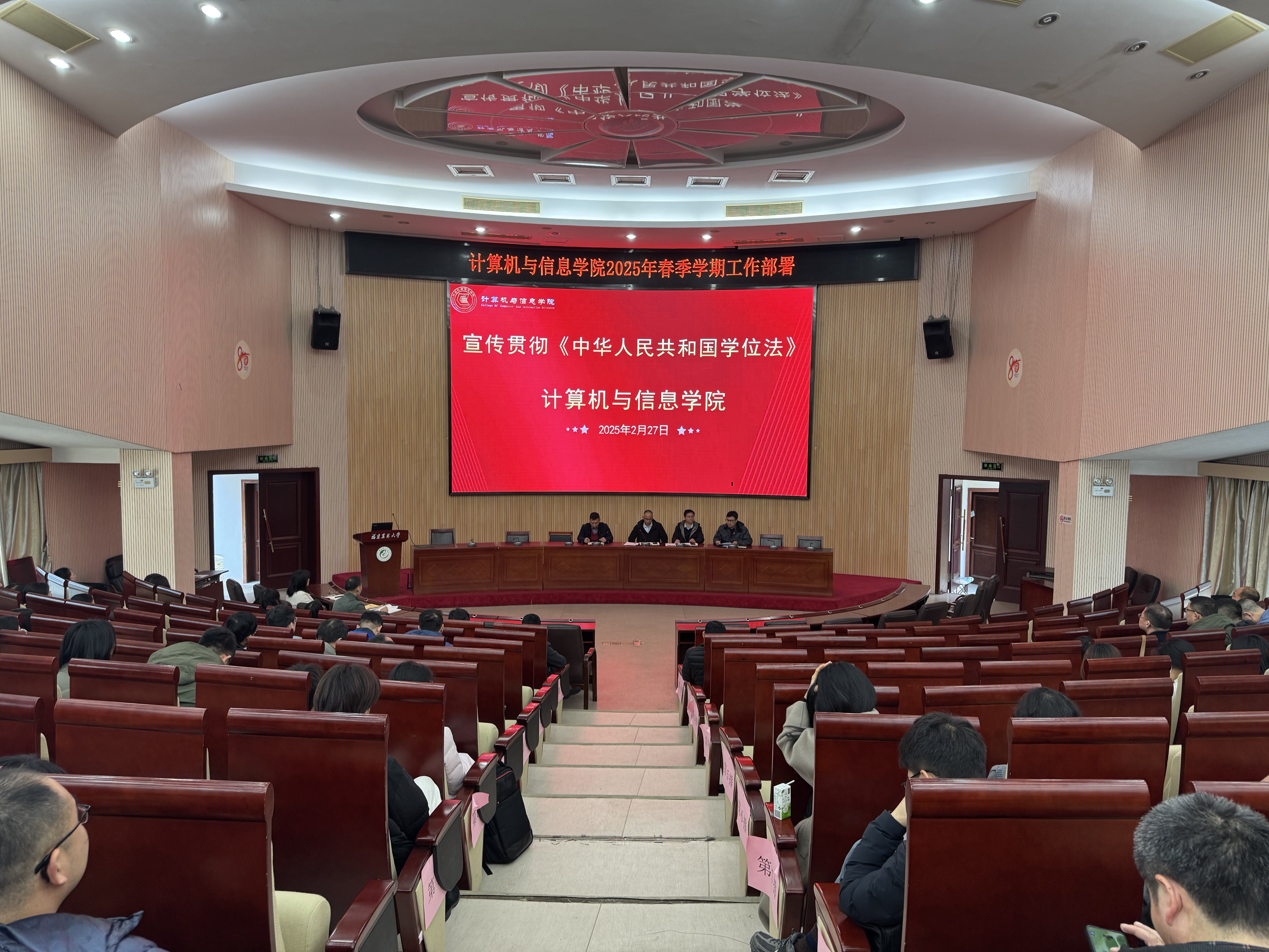 2月27日下午,计算机与信息学院在博学报告厅召开2025年春季学期工作会议。学院领导班子成员及全体教职工参加。会议由学院党委书记钟一文主持。