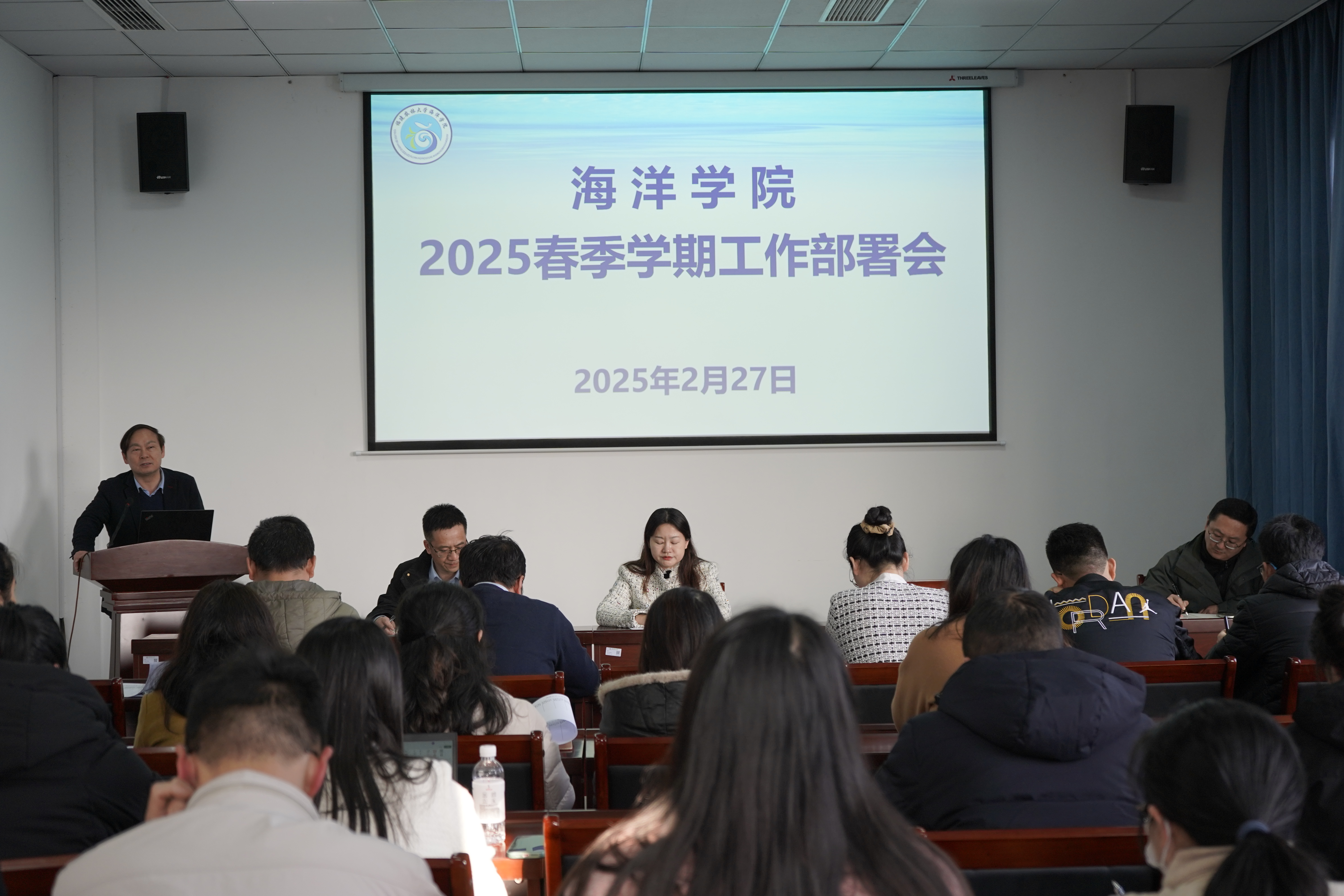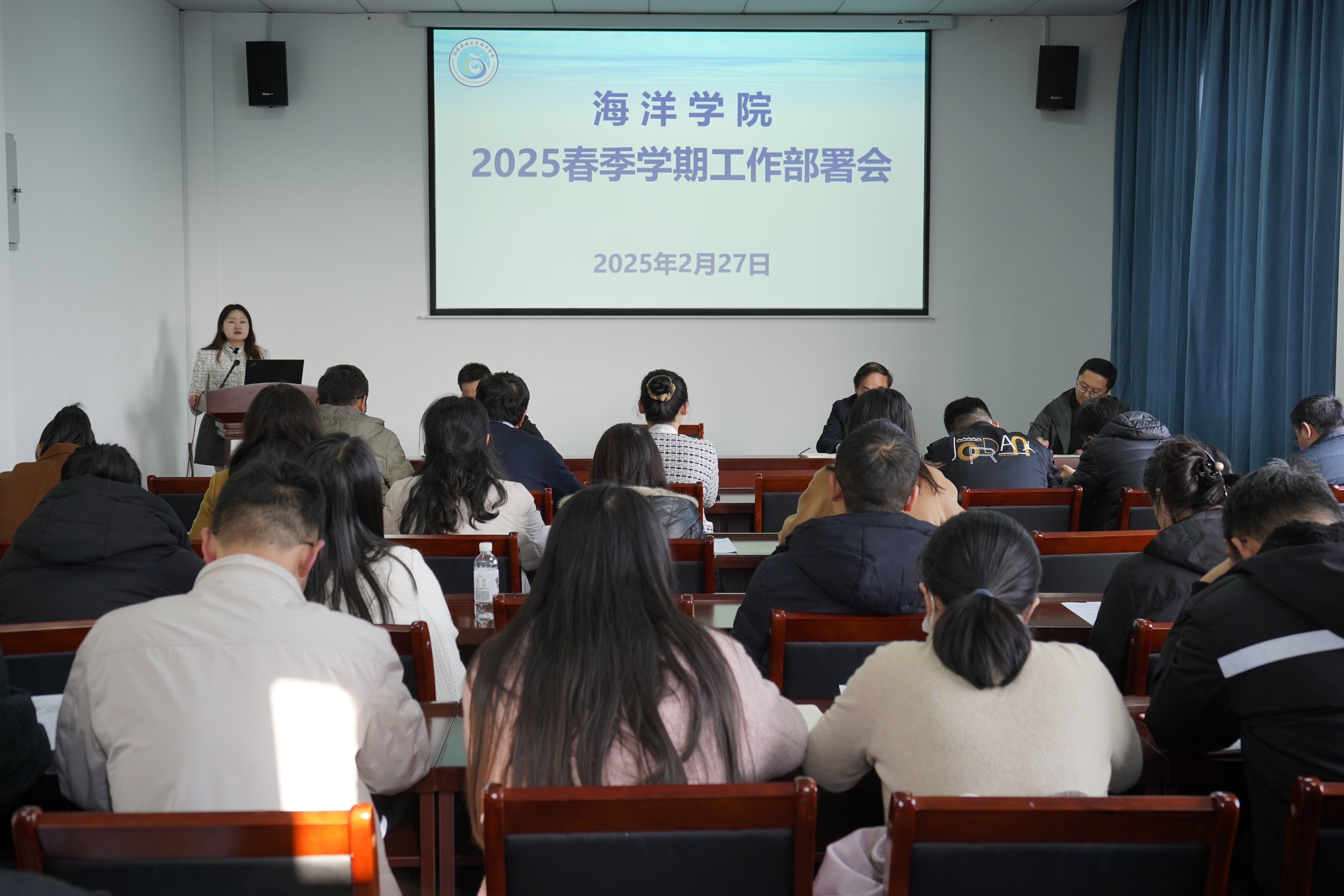 2月27日下午,海洋学院在601会议室召开2025年春季学期工作部署会暨学院党委理论学习中心组学习(扩大)会,全体教职工参加。会议由学院党委副书记(主持工作)郑亚凤主持。