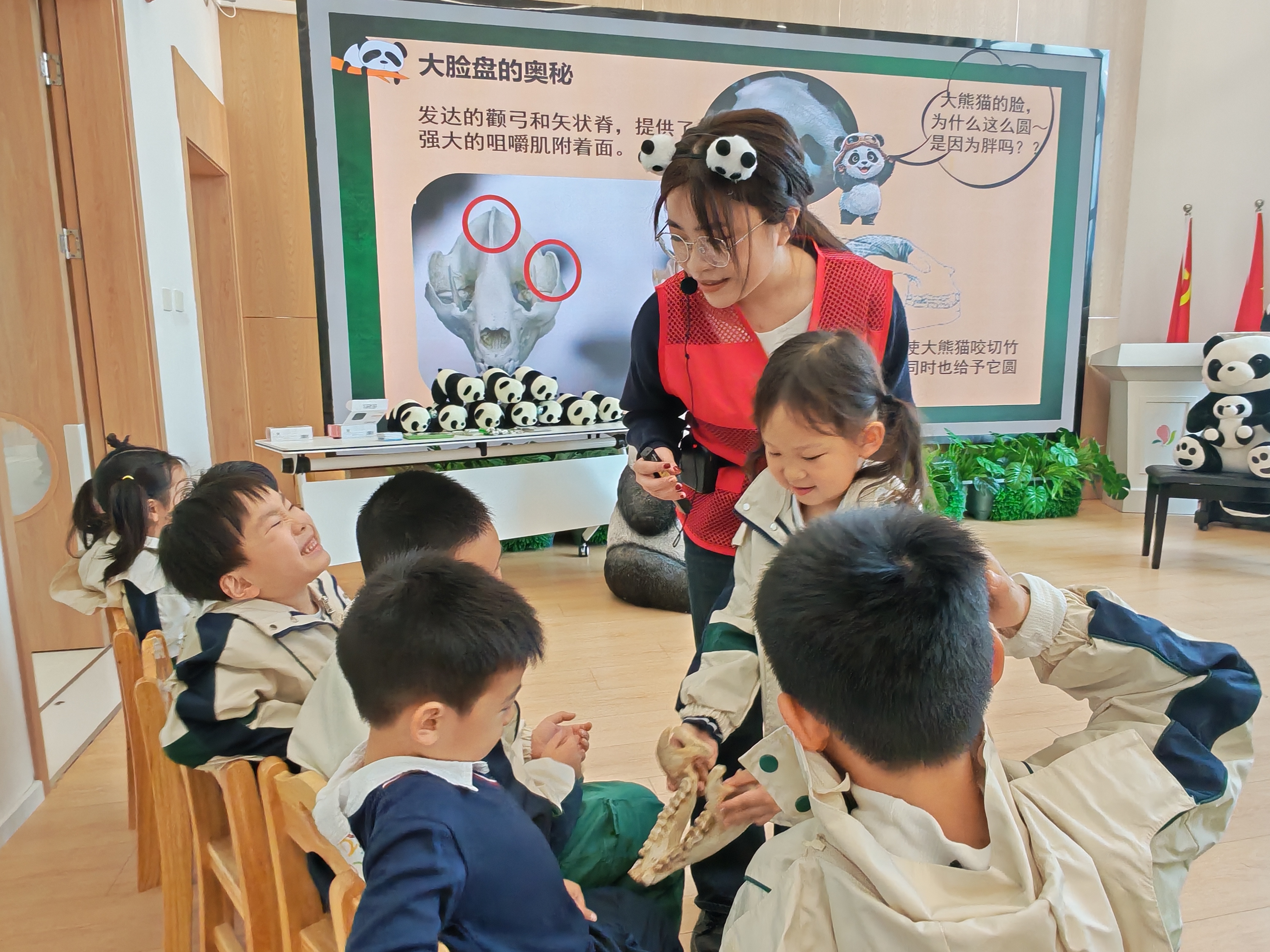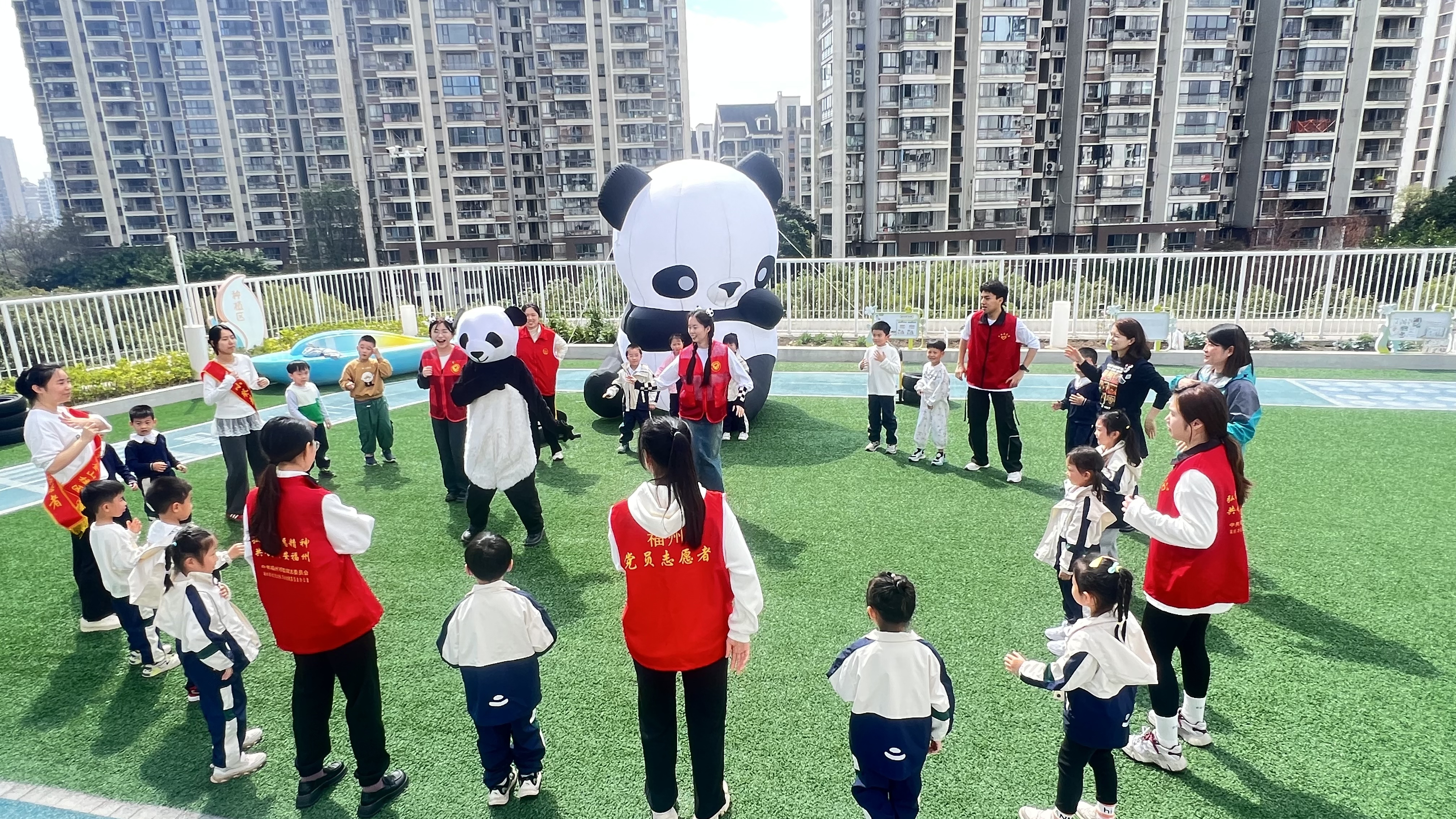 院“榕小盼”熊猫科普志愿服务队与小朋友合影