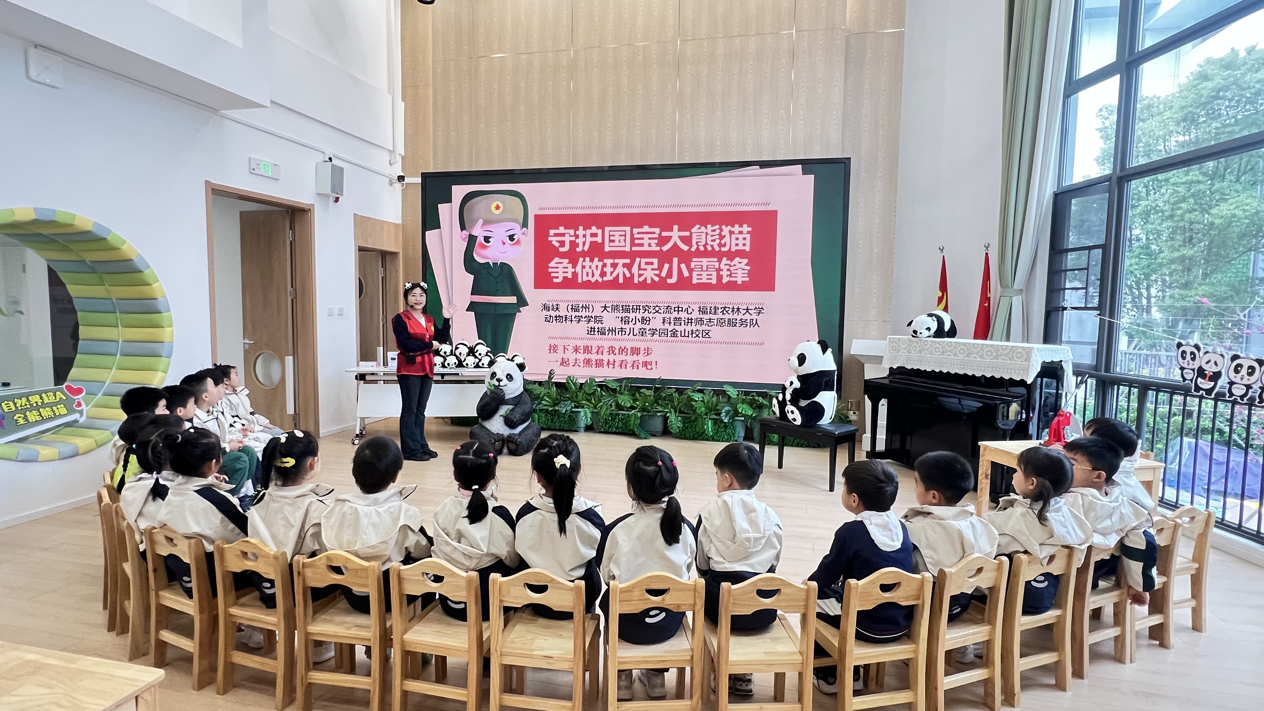 3月3日上午,在第62个“学雷锋纪念日”到来之际,开云网页版动物科学学院“榕小盼”熊猫科普志愿服务队联合海峡(福州)大熊猫研究交流中心,走进福州市儿童学园金山校区,开展“守护国宝大熊猫,争做环保小雷锋”公益主题活动。通过寓教于乐的互动课堂,青年志愿者与小朋友们携手传承雷锋精神,共筑生态保护之梦。