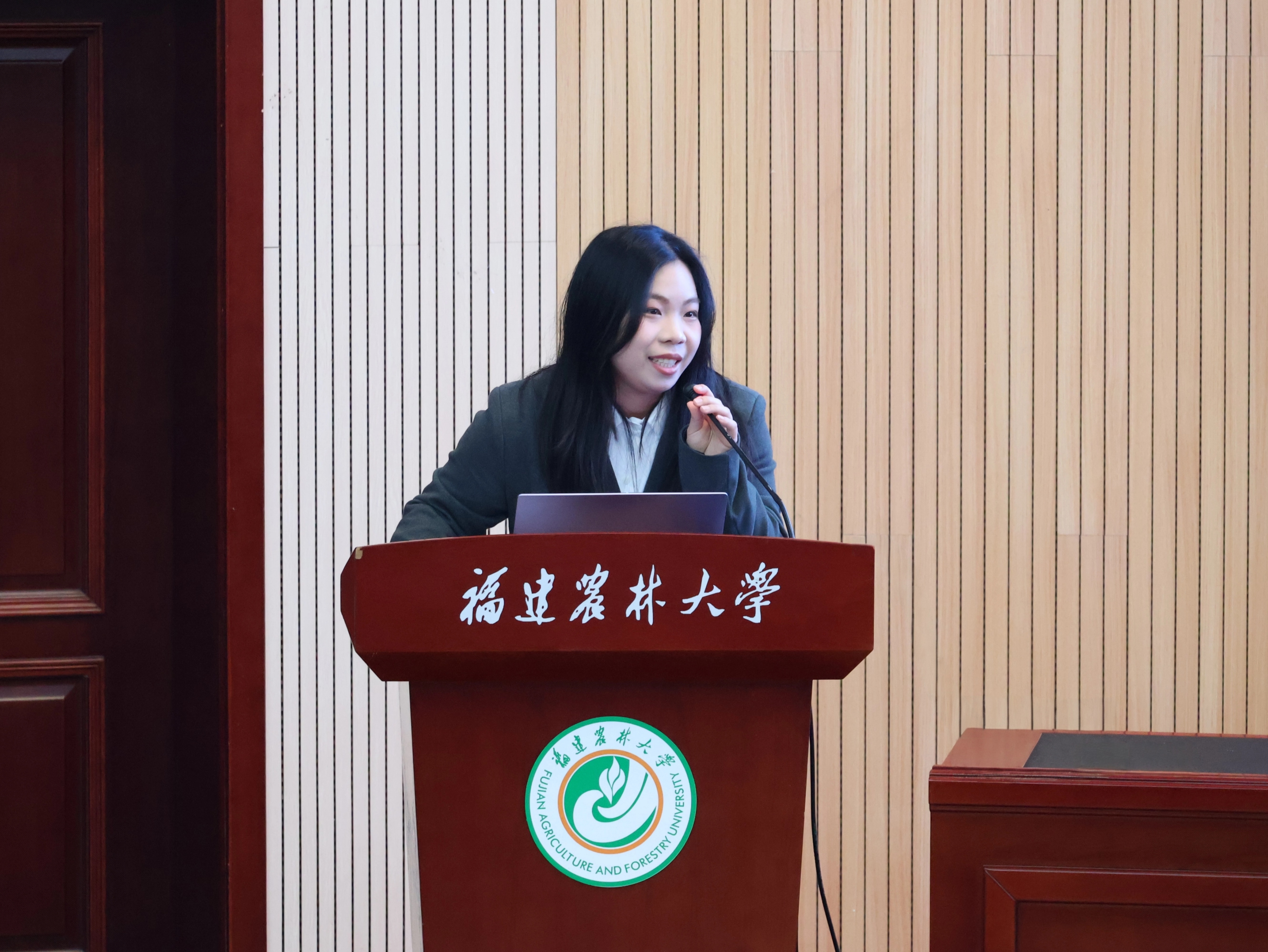 接着,2023级农村区域发展2班的本科生夏梓桐,讲述了实践队在漳浦县参与传统文化“需求+”项目,通过墙绘、微景观和文创设计,激活乡村活力,以文化振兴促进产业振兴,为同学们带来了地方需求与高校专业相结合的“需求+”模式的在地转化实践经验分享,以文化IP孵化带动特色产业发展,为“文化振兴引领产业振兴”提供了实践经验,展现了青年学子的担当作为。