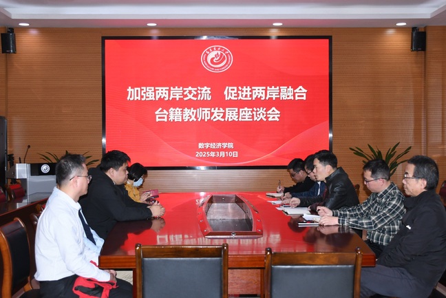 3月10日下午,数字经济学院在安溪校区协同创新中心会议室召开“加强两岸交流 促进两岸融合”台籍教师发展座谈会,学院党委书记黄成茂主持会议,副书记张云帆、副院长吴义炳、全体台籍教师出席会议。