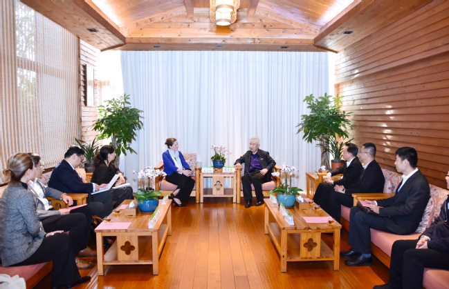 3月10日下午,英国驻广州总领事孟诗然(Sarah Mann)女士一行来校访问,洽谈教育合作。校党委书记赖海榕、副校长郑宝东在明德楼13楼会见代表团并座谈。
