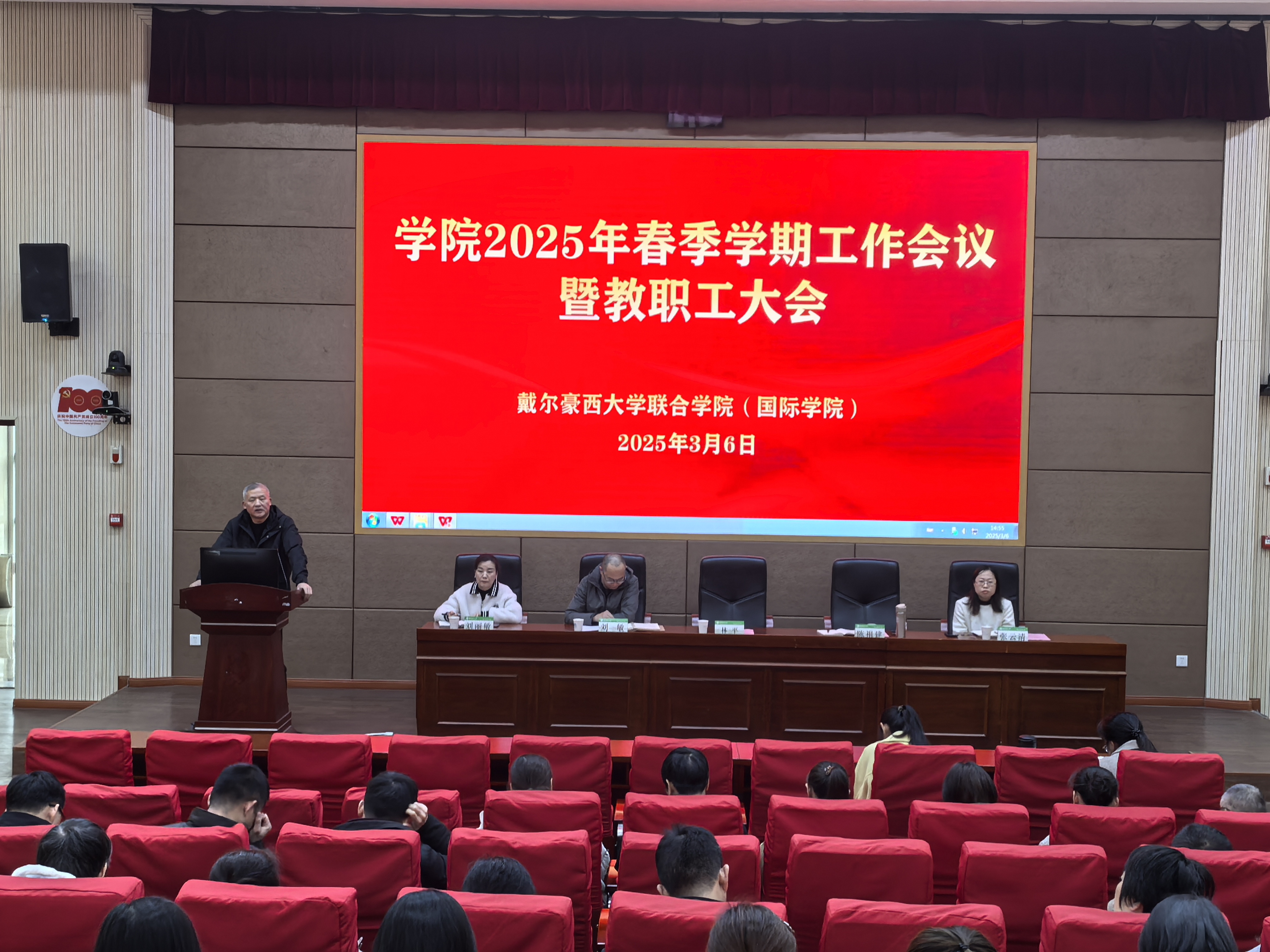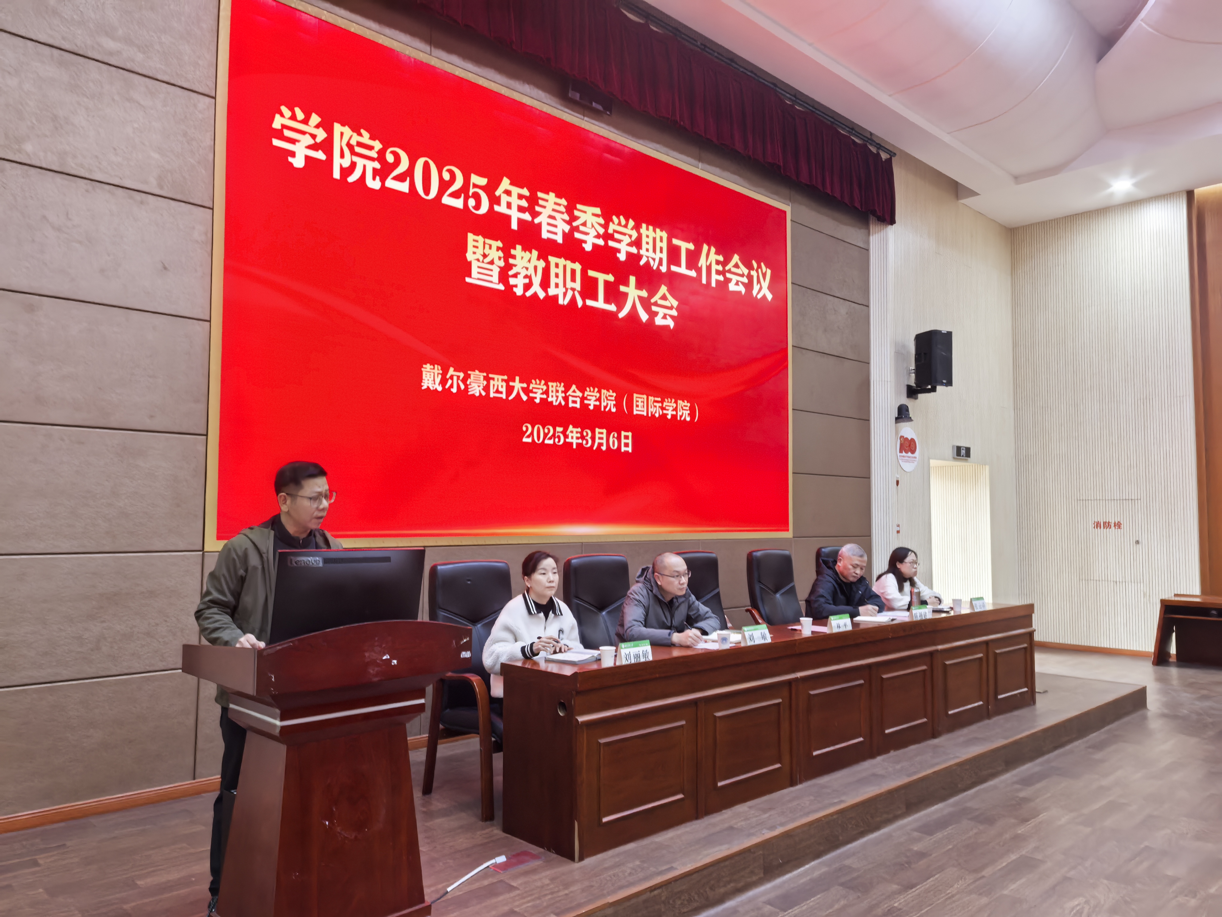 3月6日下午,戴尔豪西大学联合学院(国际学院)在旗山校区小报告厅召开学院2025年春季学期工作会议暨教职工大会,全体教职工参加会议,学院党委副书记刘敏主持会议。
