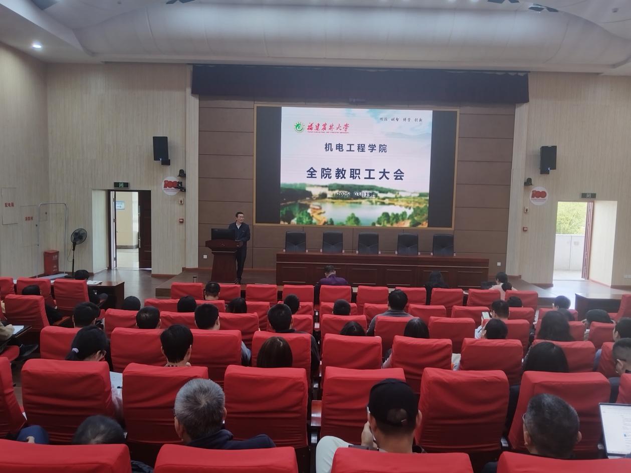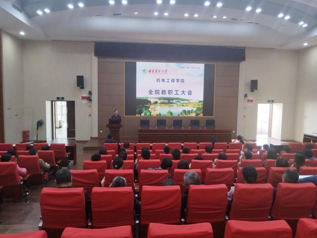 3月13日下午,机电工程学院在旗山校区小报告厅召开新学期全院教职工大会。学院党政领导班子及全体教职工参会,会议由学院党委书记陈为德主持。