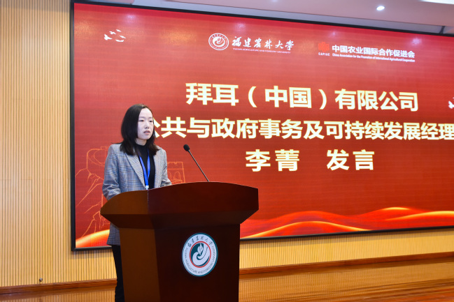 拜耳(中国)有限公司公共与政府事务及可持续发展经理李菁发言