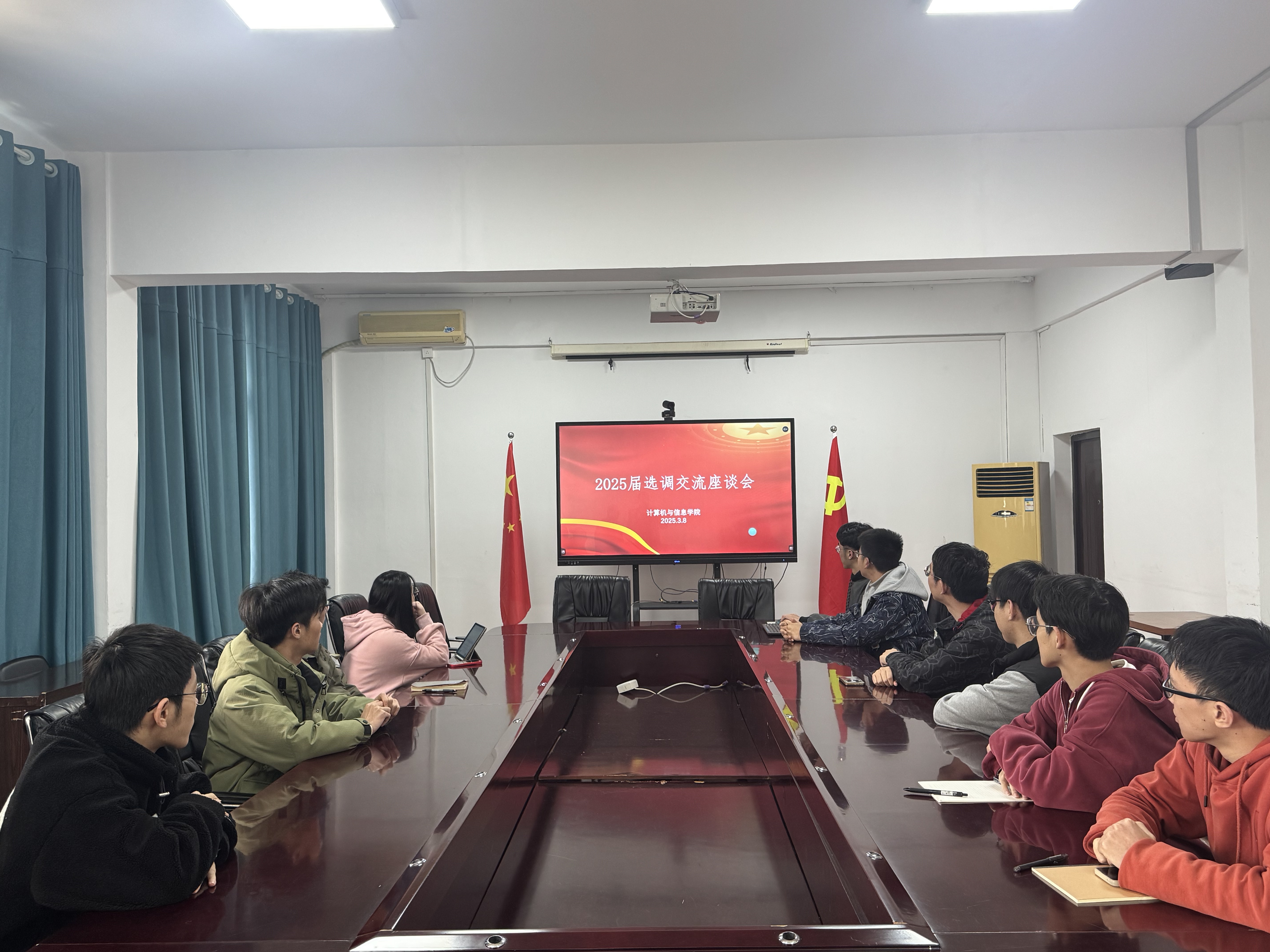 3月8日下午,计算机与信息学院2025届选调交流座谈会于学院302会议室举办,此次座谈会邀请了2024届选调生黄欣奕、张彭柠两位校友返回母校交流心得经验。
