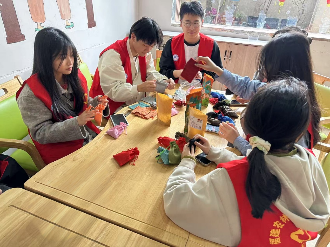 志愿者们共同制作香囊
