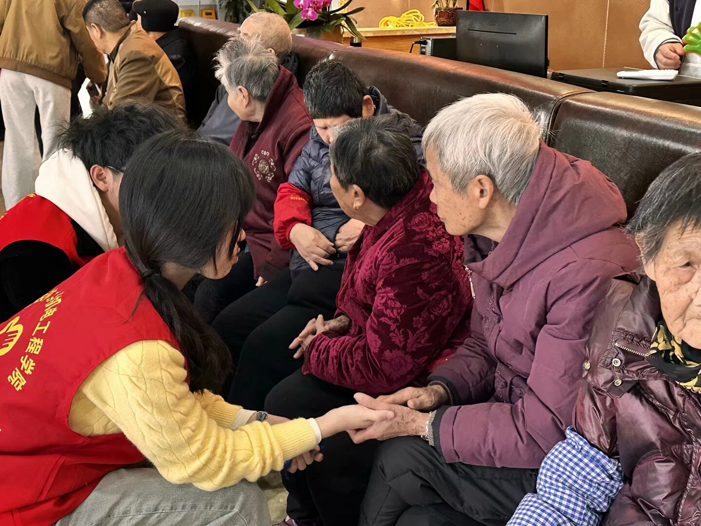 志愿者们陪老人们聊天