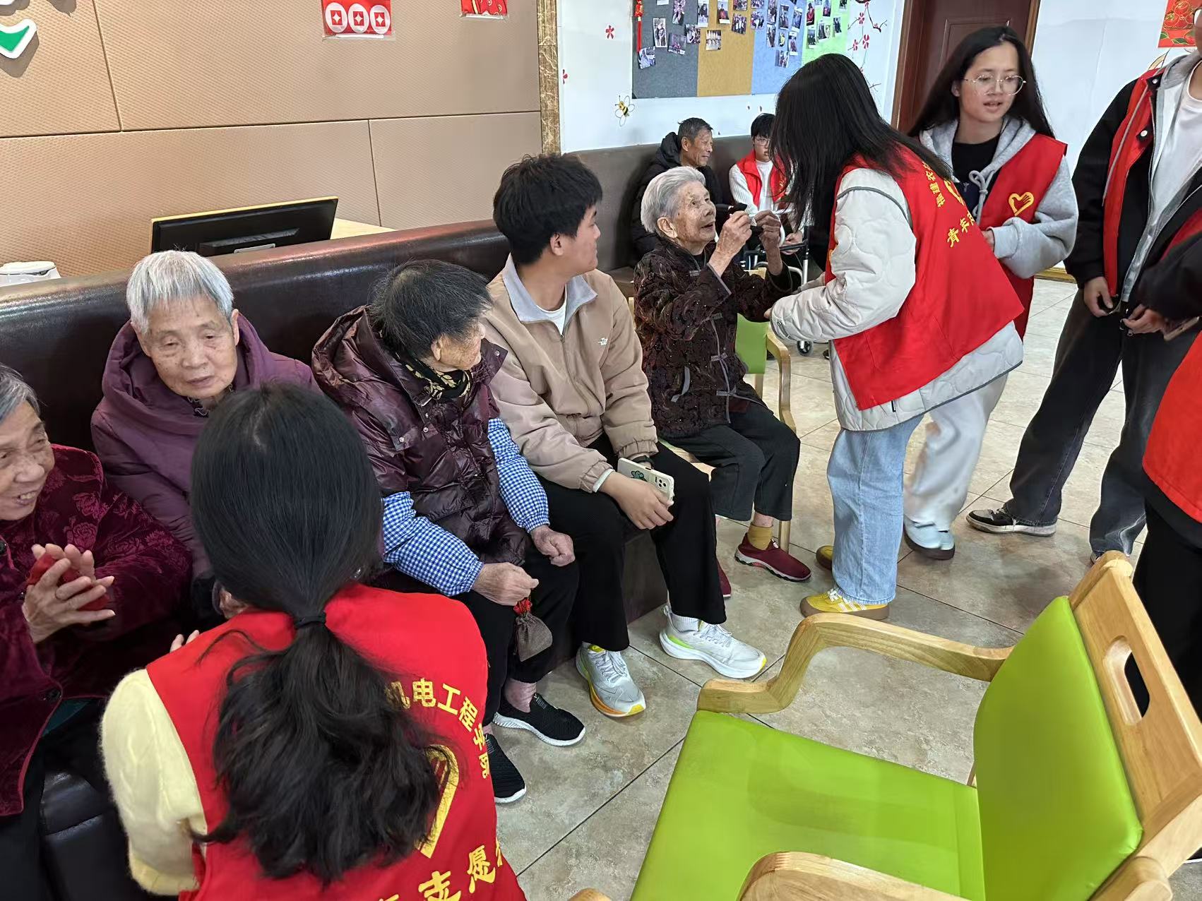 机电工程学院青年志愿者工作部和玖玖敬老院老人们合照