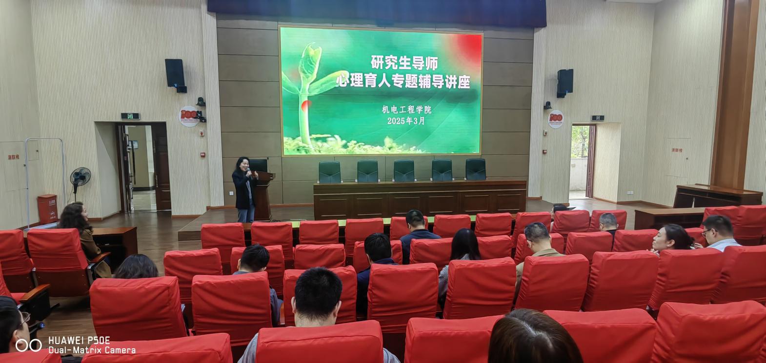 3月13日傍晚,机电工程学院在旗山校区小报告厅举办研究生导师心理育人专题辅导讲座。本次讲座邀请校大学生心理健康中心副主任李娟主讲,学院党委副书记杨莹、副院长魏萱以及研究生导师代表共计20余人出席活动。