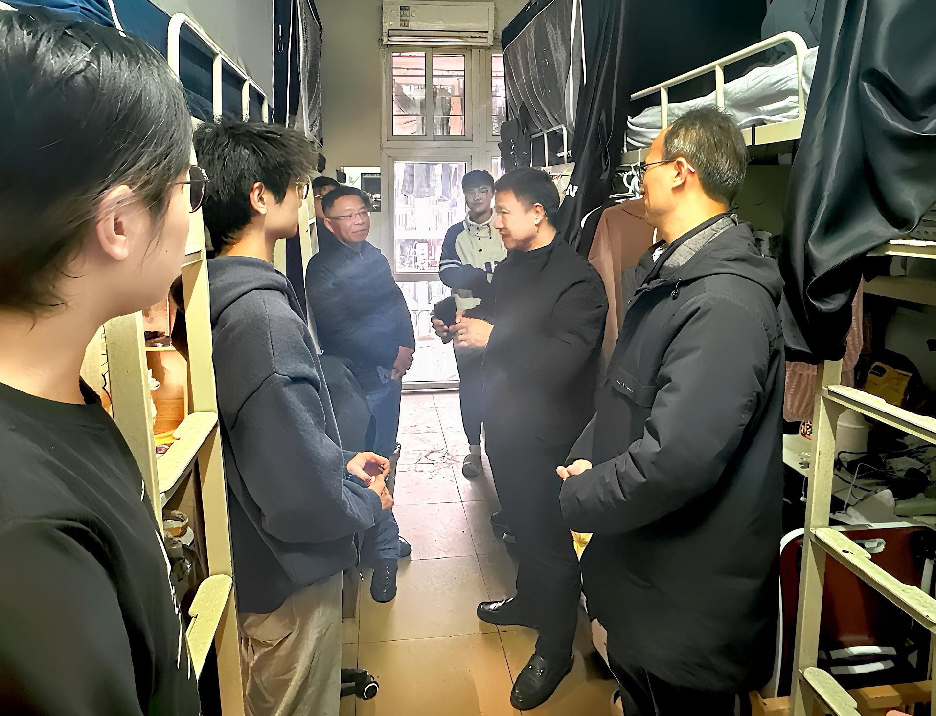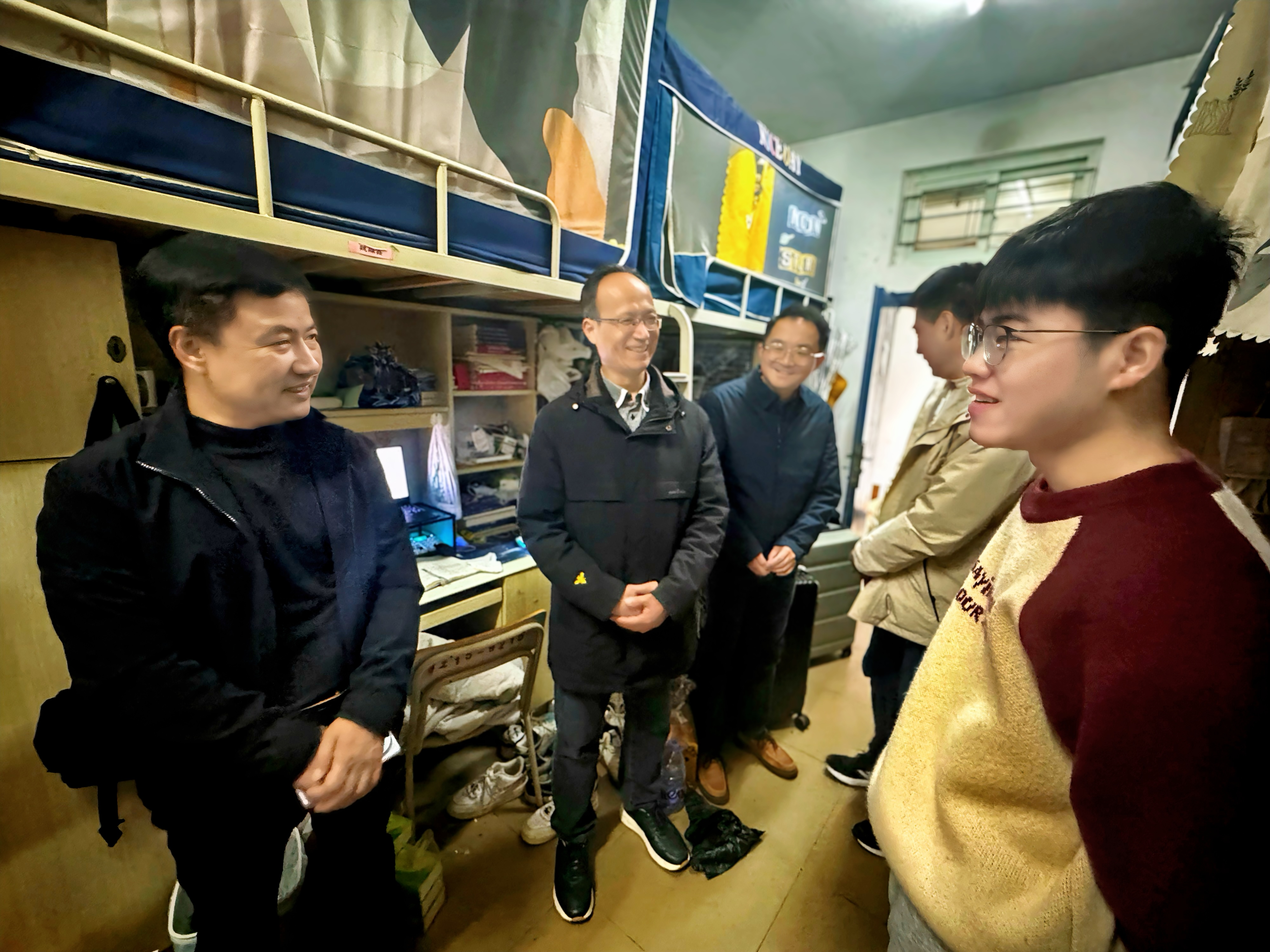 学院领导走进北区1号楼和2号楼的制药工程专业各年级学生宿舍,与同学们亲切交谈。在低年级学生宿舍,学院领导亲切询问同学们“家乡在哪?”“转入新学院学习、生活是否适应?”在中高年级学生宿舍,学院领导仔细询问同学们的课程学习、专业实习实践、发展规划、学生活动工作衔接情况等;在毕业班学生宿舍,学院领导深入询问同学们的毕业论文进展、考研情况、工作去向、当前面临的困难和需求等。学院领导认真听取了同学们的反馈,对同学们的积极状态和良好精神风貌表示肯定。连文表达了学院对新转入同学们的关心和重视,鼓励同学们要珍惜大学时光,努力学习专业知识,积极参加社会实践,不断提升自身综合素质。苏松坤则结合自身经历,勉励同学们要树立远大理想,明确学习目标,做好职业生涯规划,为将来投身医药事业打下坚实基础。
